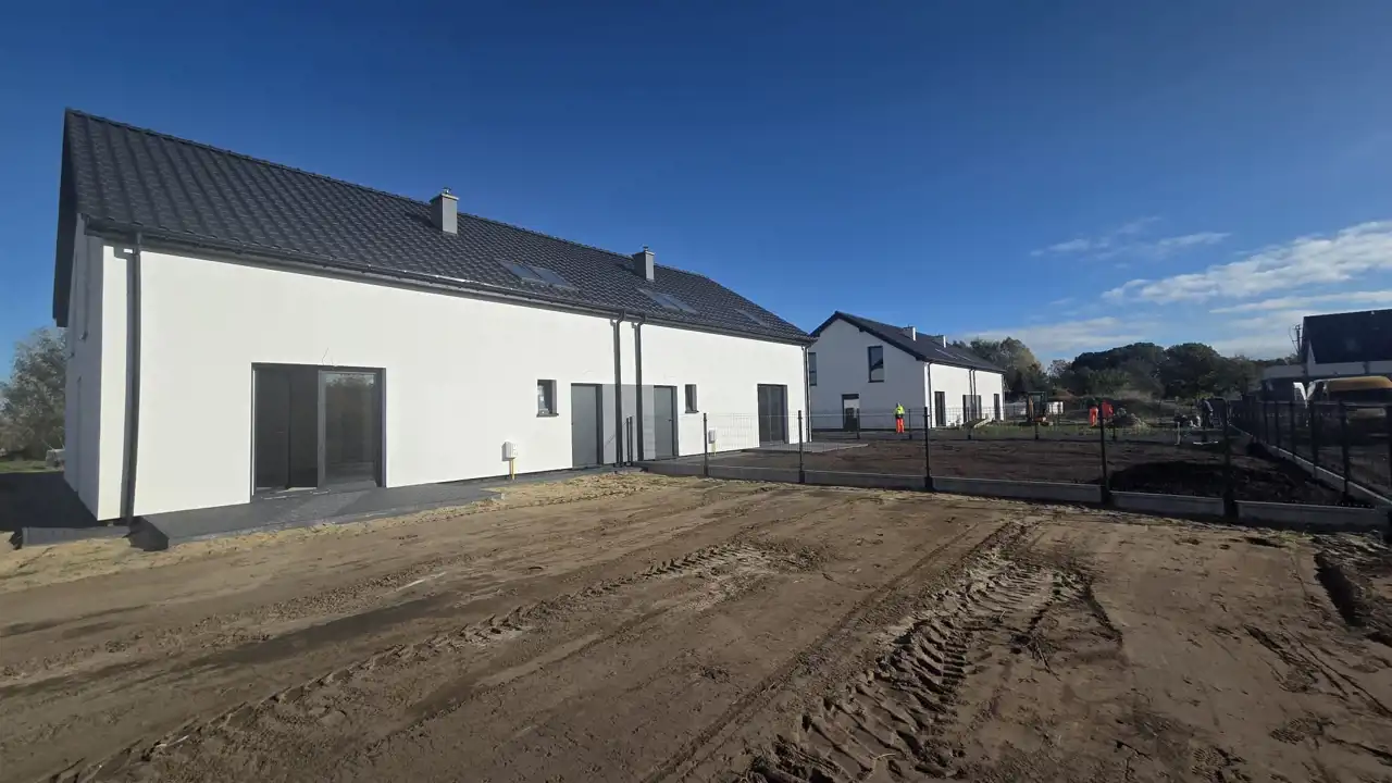 Na sprzedaż nowoczesny dom jednorodzinny w zabudowie bliźniaczej, położony w Kliniskach Wielkich, zaledwie 15 km od Szczecina (Prawobrzeże).