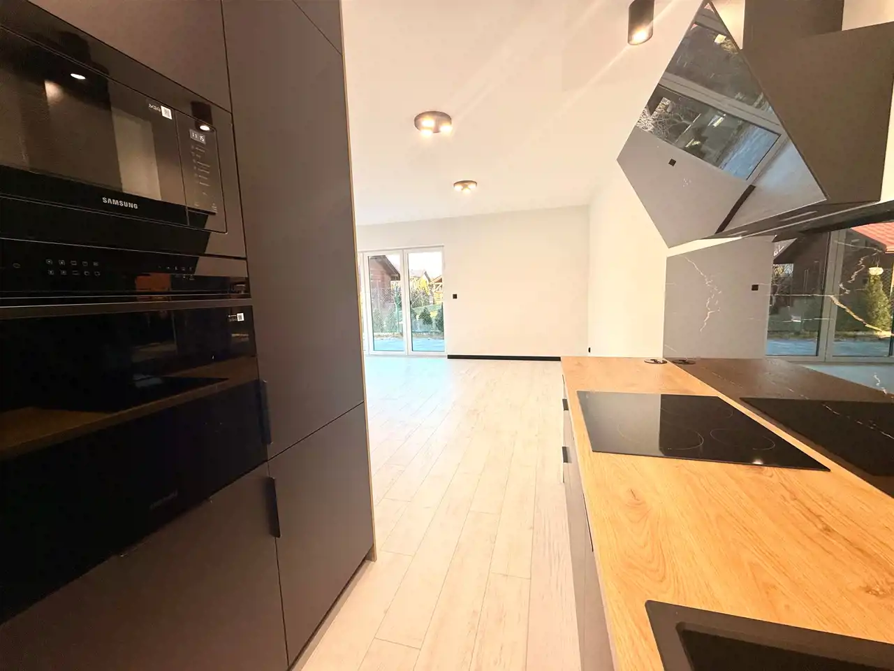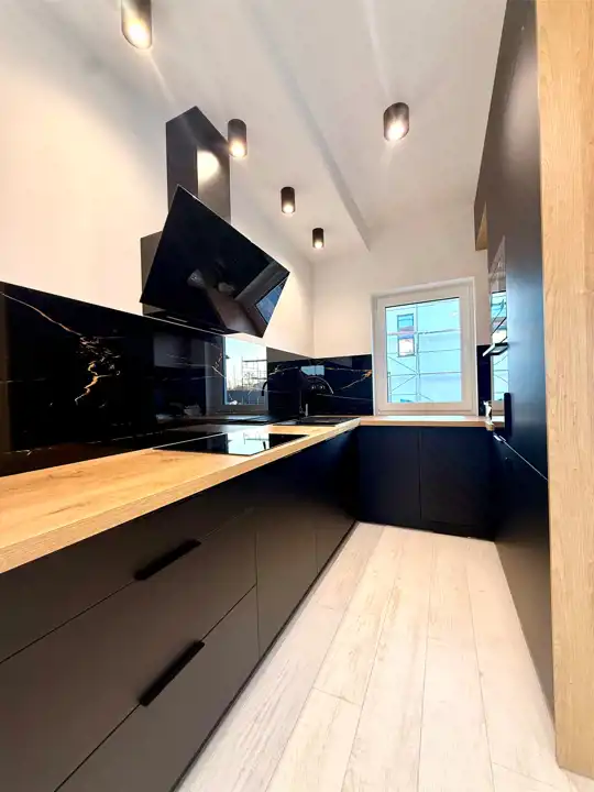 - kuchnia w nowoczesnej zabudowie na wymiar, w pełni wyposażona w sprzęt AGD