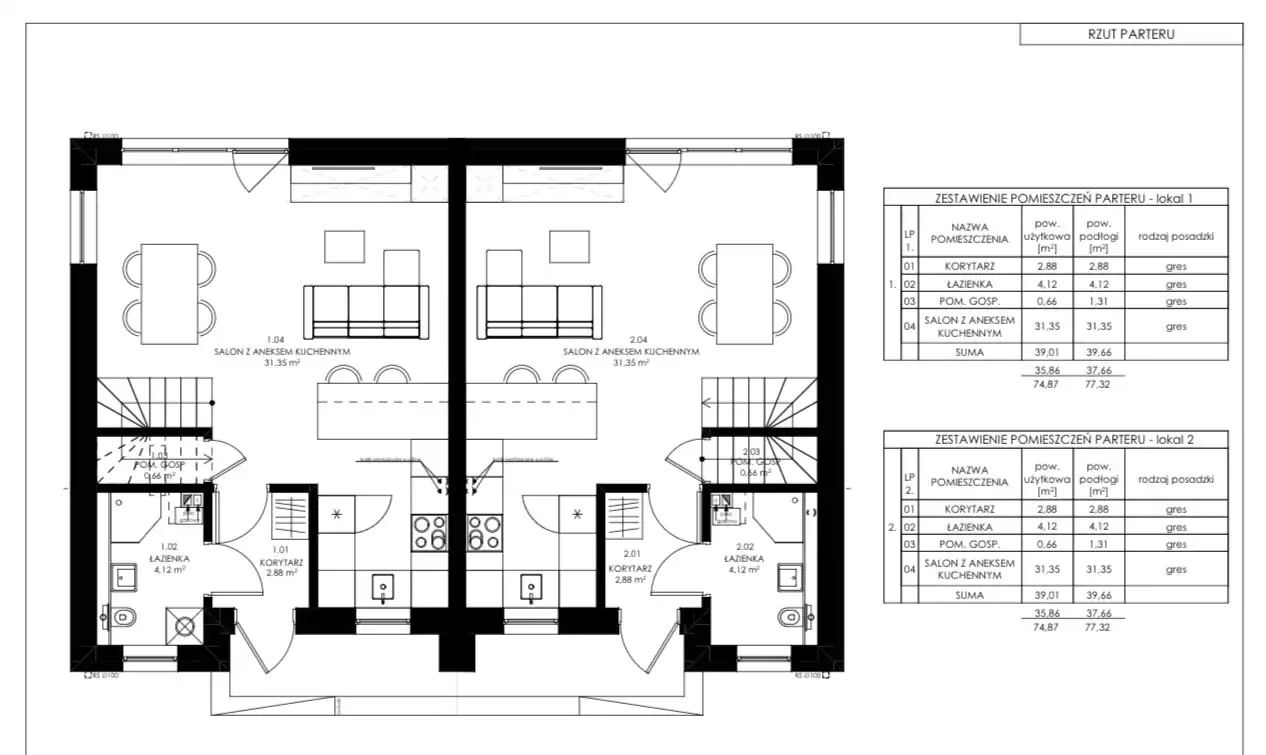 - Powierzchnia całkowita: 77,32m²