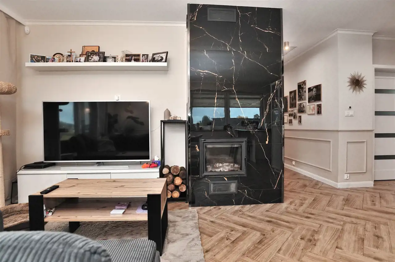 - Niezależne energetycznie ogrzewanie – kominek z płaszczem wodnym + podłogówka w całym domu → ciepło, oszczędność i uniezależnienie od cen gazu