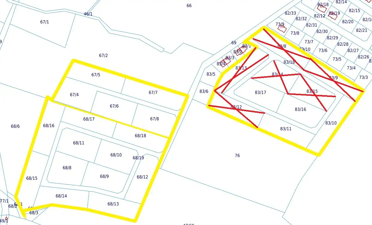 Kształt działek daje możliwość, po uzyskaniu warunków zabudowy na ponowny podział.