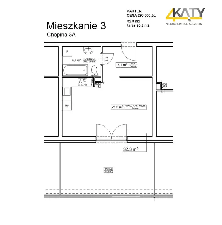 - Charakterystyka mieszkania 32.3 m2, 1 pokój