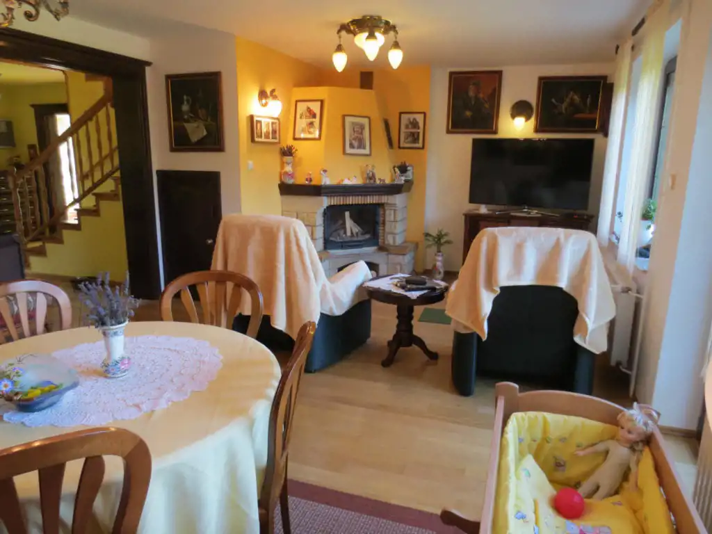 Parter: salon z kominkiem, kuchnia, jadalnia, sypialnia, łazienka, osobne WC dla gości.