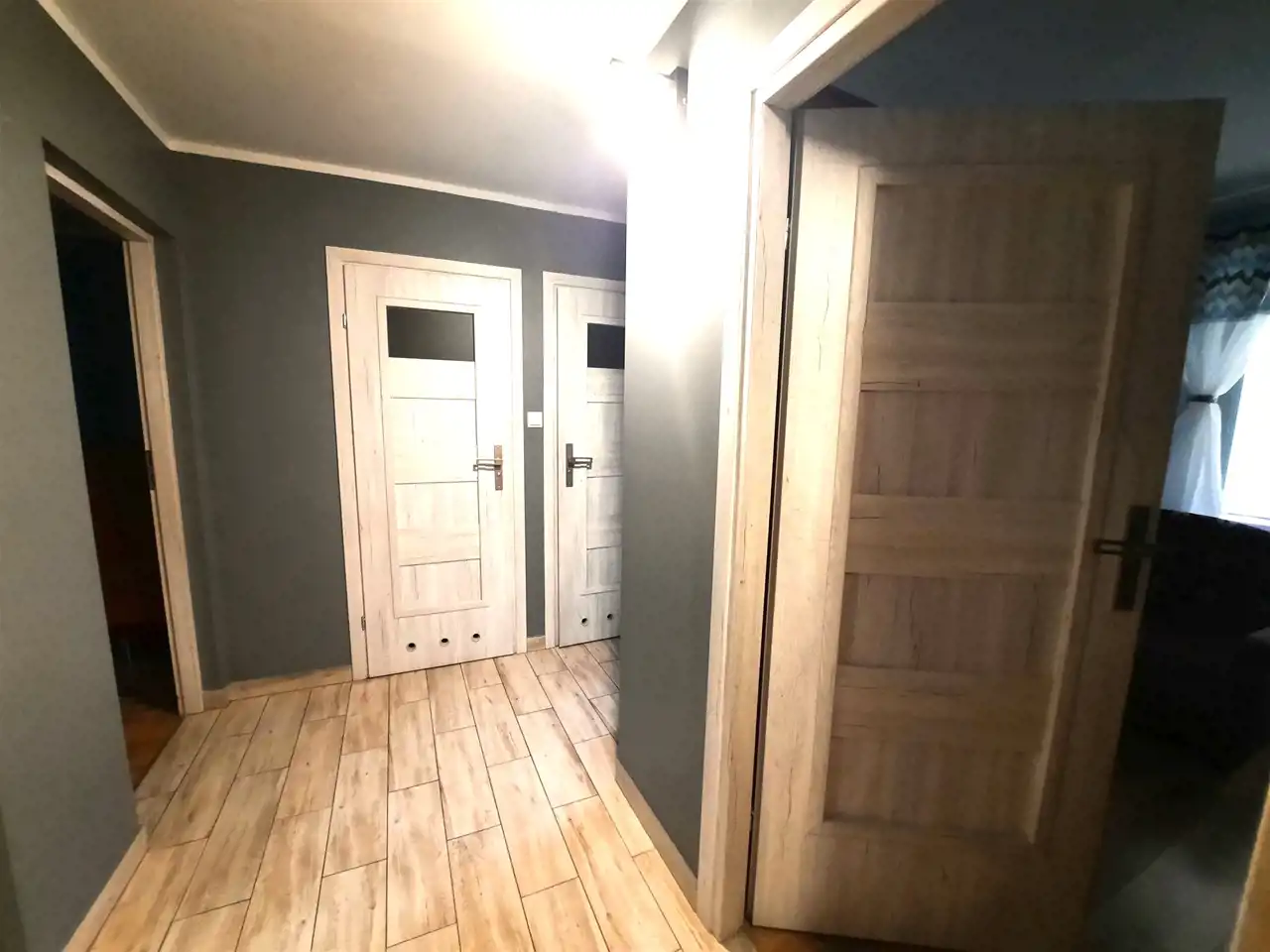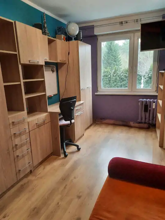 Na wielkość metrażu składają się 3 pokoje, oddzielna kuchnia, łazienka, WC oraz korytarz, duży balkon. Do mieszkania przynależy również piwnica spora piwnica i wspólne pomieszczenie na rowery lub wózki. Na ścianach gładzie, na podłogach panele oraz w kuchni, łazience i przedpokoju płytki podłogowe. Ekspozycja okien południe i północ. Mieszkanie dwustronne. Położone na parterze w bloku czteropiętrowym. Meble oraz sprzęt AGD (kuchnia gazowa, piekarnik, zmywarka, lodówka, pralka) w mieszkaniu stanowią jego wyposażenie i pozostają dla nowych właścicieli. Balkon z widokiem na zielony teren oraz wyjściem do ogródka, który jest już zagospodarowany zielenią. Mnóstwo miejsc postojowych przed blokiem. Czynsz administracyjny 580 zł, (wliczone zaliczki na wodę i ogrzewanie) Nieruchomość bez zadłużeń, mieszkanie spółdzielcze własnościowe.