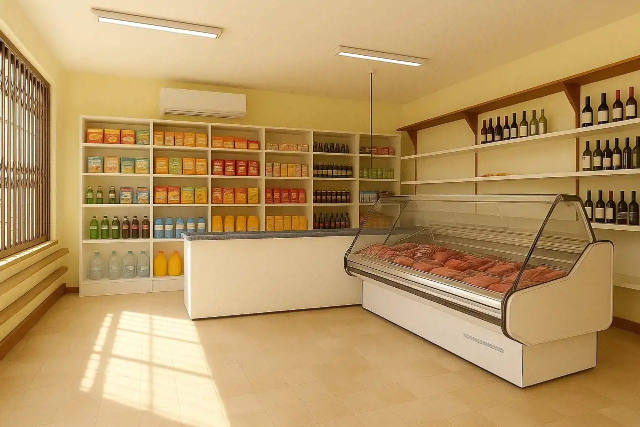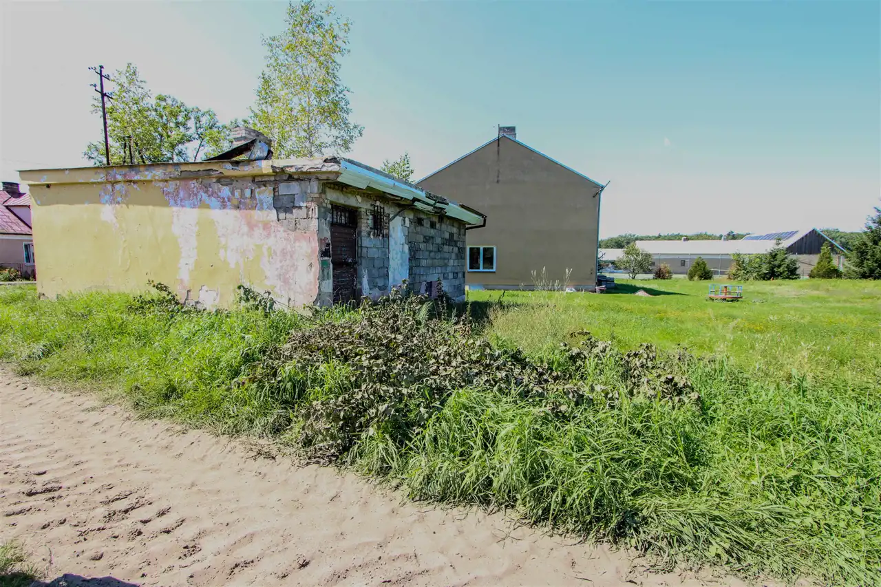 Działka o powierzchni 631 m2, szerokość frontu działki 13,5m. Dojazd drogą asfaltową, dostępne media: woda, prąd. Działka zabudowana murowanym obiektem handlowo-usługowym o powierzchni około 90m2, dawniej funkcjonował tu wiejski sklep. Na tej powierzchni znajdziemy przedsionek, główną salę sprzedaży, pomieszczenie socjalne i zaplecze (dostęp również z tyłu budynku).