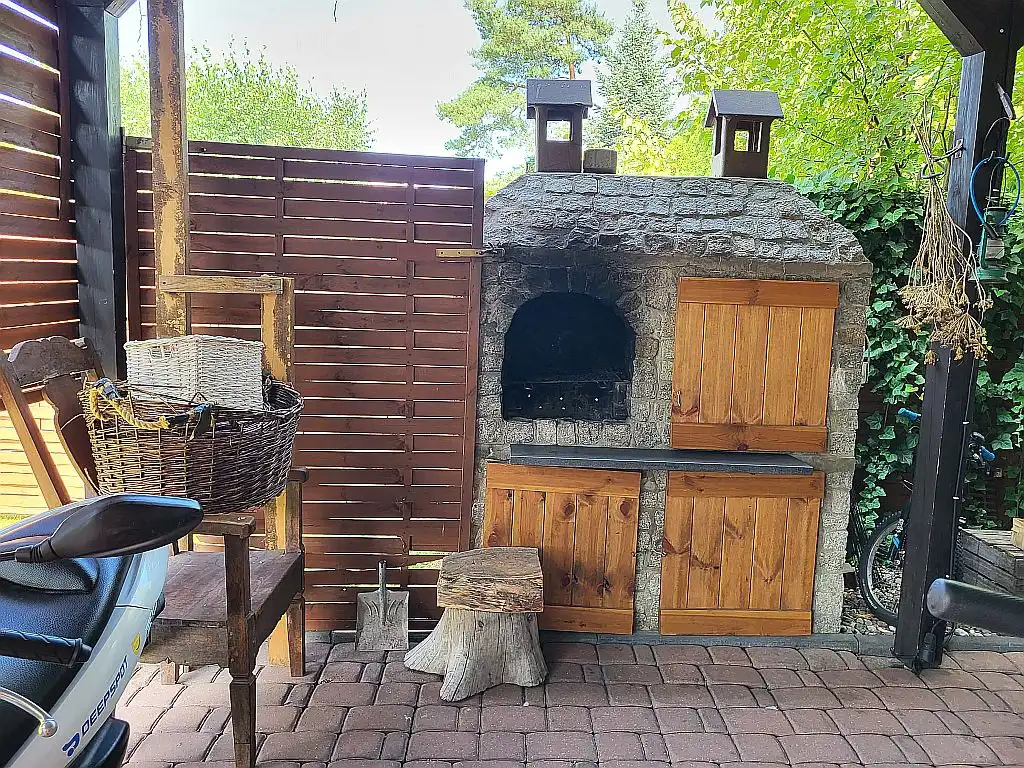 Przed domem jest zaciszny i bardzo klimatyczny taras otoczony zadbanym trawnikiem i różnymi nasadzeniami, nie muszę państwu opisywać jak pachną tam poranki z pyszną kawą…)