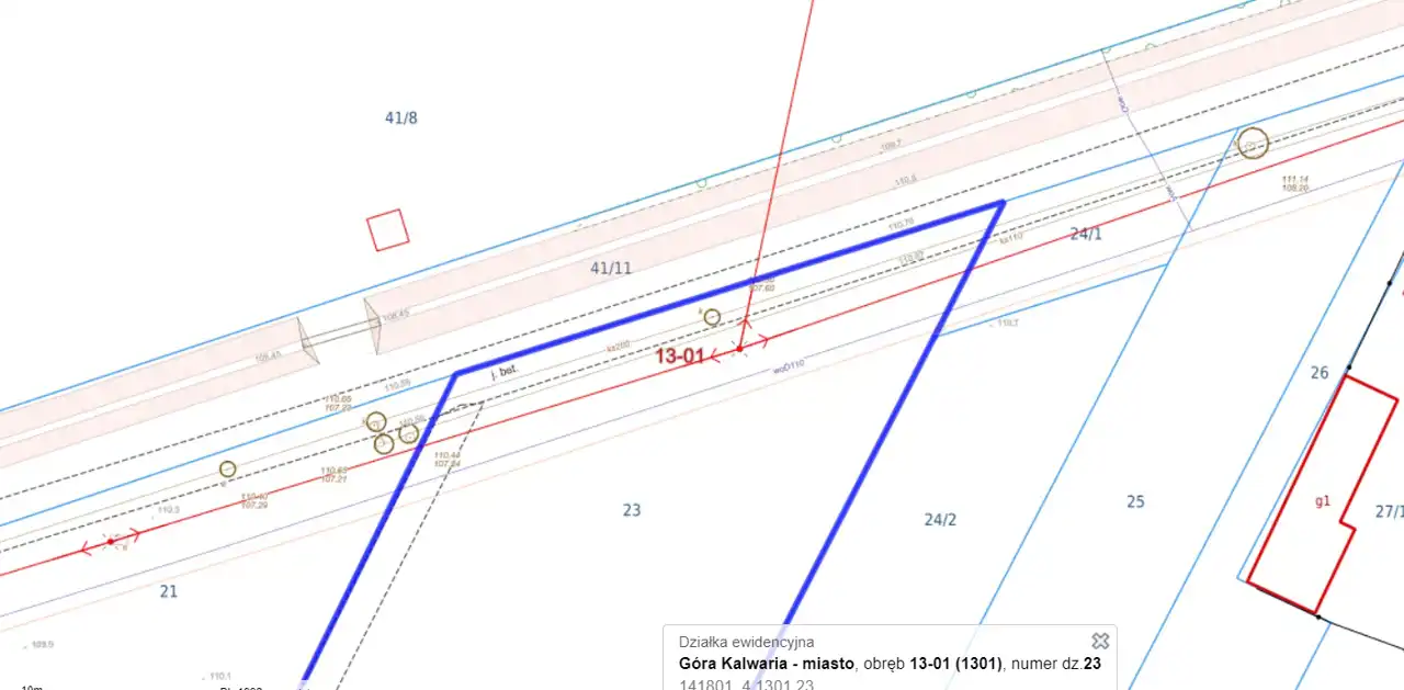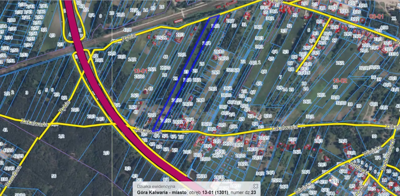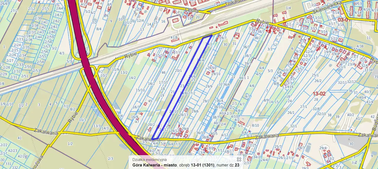 Na sprzedaż przeznaczona jest większa część działki nr 23 - około 1,24ha - przed sprzedażą zostanie oddzielona działka o około 4000m2 od strony południowej (od ul. Zakalwaria).