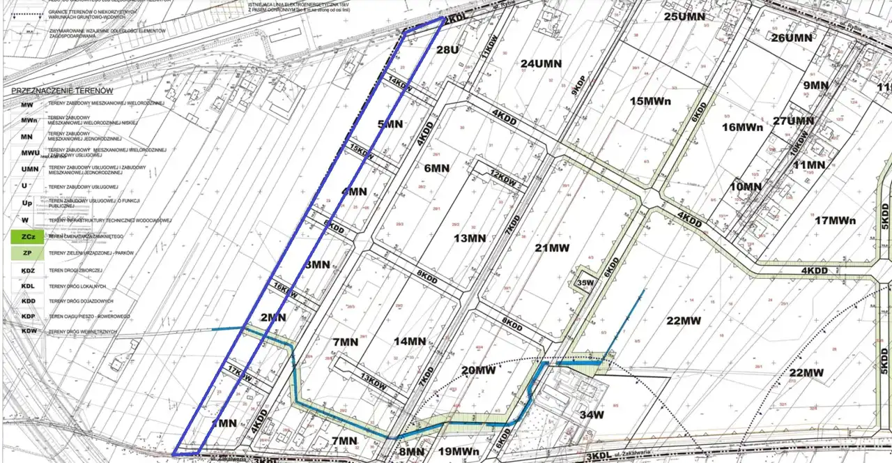 Działka jest objęta miejscowym planem zagospodarowania przestrzennego pod zabudowę mieszkaniową i częściowo usługową.