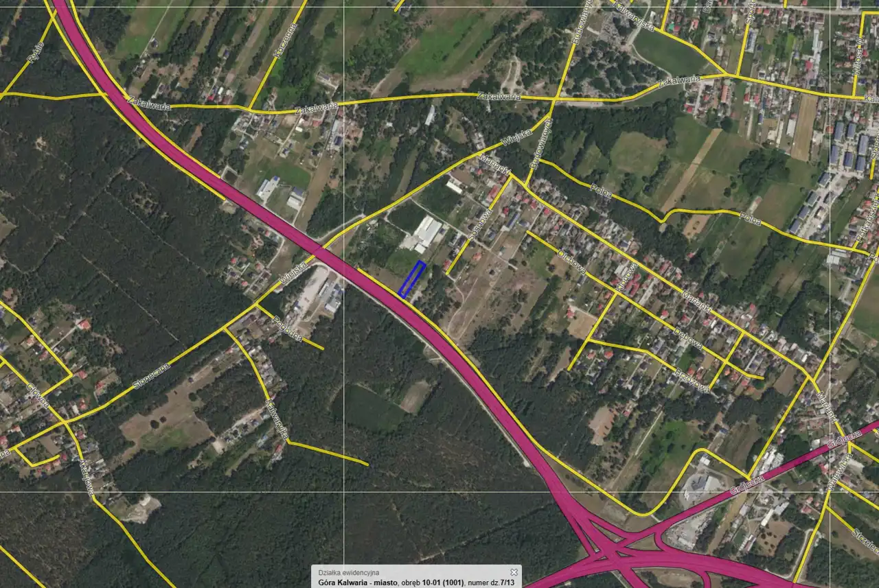 Działka znajduje się w odległości 1,9 km od stacji PKP Góra Kalwaria.
