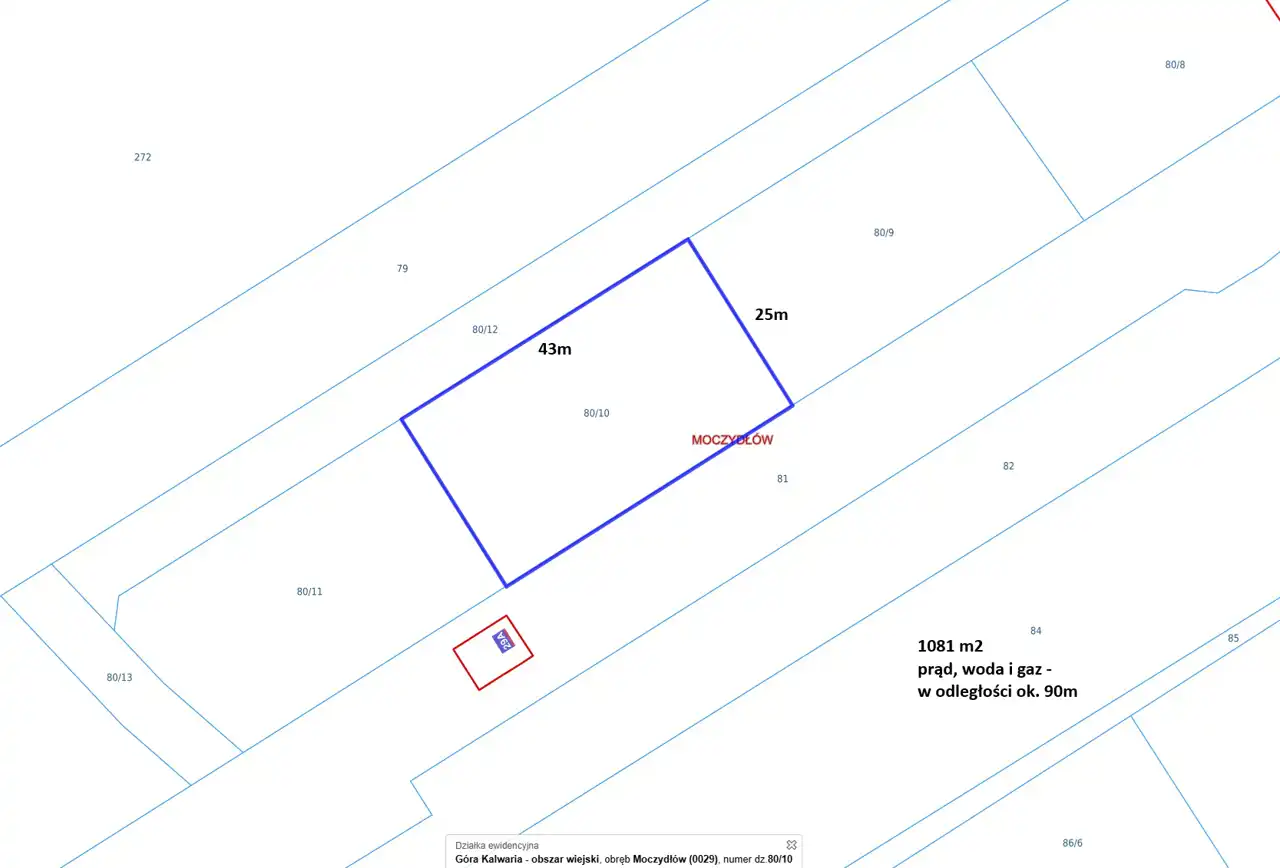 - Media Woda: w ulicy; Kanalizacja: brak; Prąd: w ulicy; Gaz: w ulicy