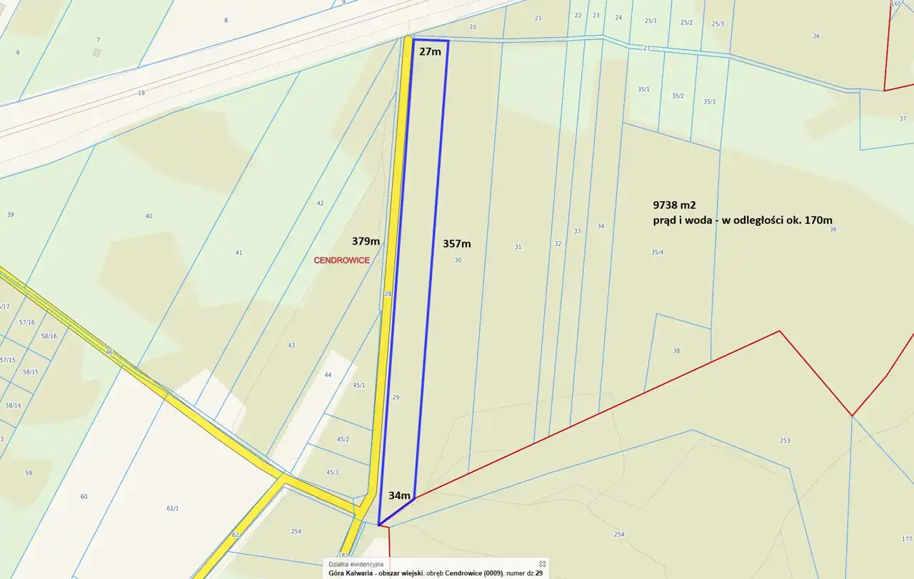 - Media Woda: w ulicy; Kanalizacja: brak; Prąd: w ulicy; Gaz: brak
