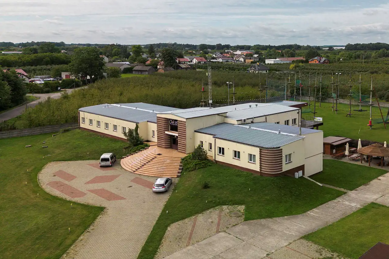 Ośrodek wybudowany w 2002 roku, usytuowany na bardzo dużej, zadbanej działce o powierzchni 11 800 m2.