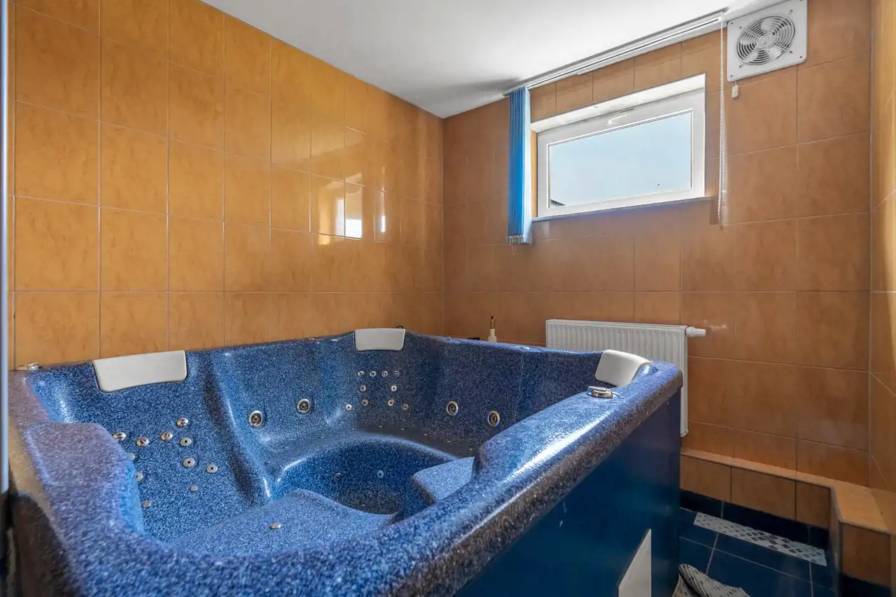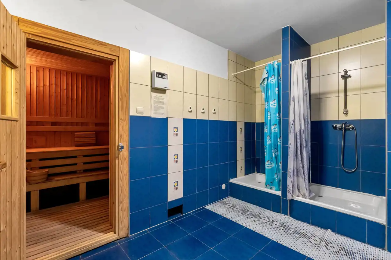 Do dyspozycji gości jest hydromasaż w 4-osobowej wannie oraz przestronna sauna na 10 osób.