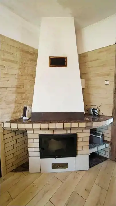 ogrzewanie z kominka (wykonany nadmuch do pokoju oraz do kuchni),