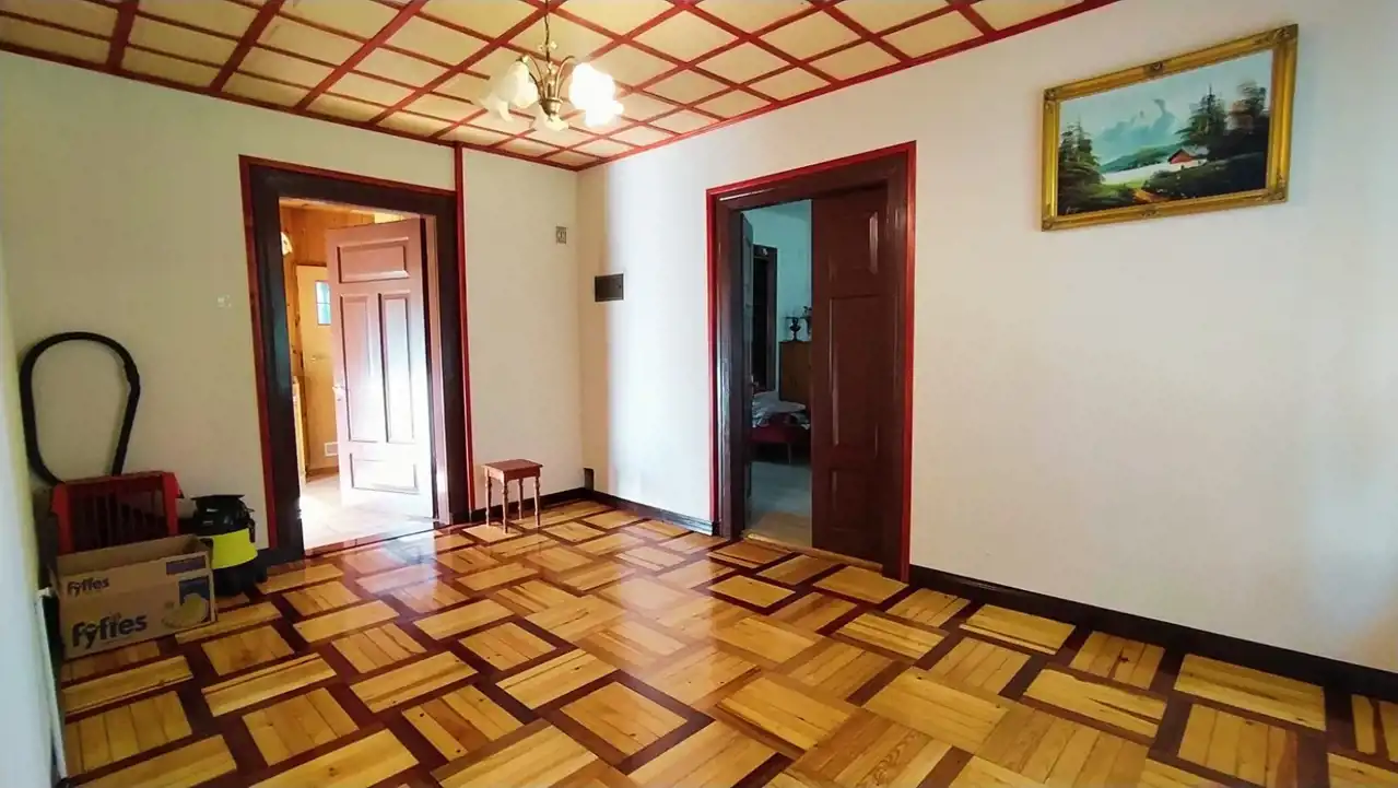 na podłogach na I piętrze terakota , w jednym pokoju parkiet, na parterze lastryko,