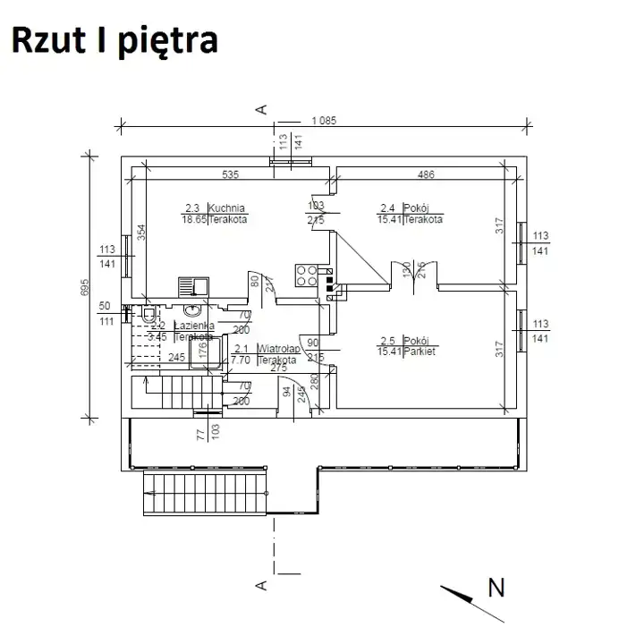 * I piętro: 2 pokoje, kuchnia, łazienka z prysznicem i WC , wiatrołap,