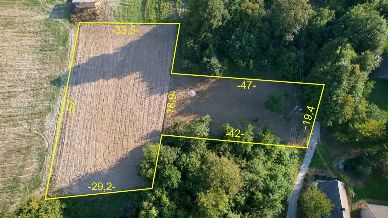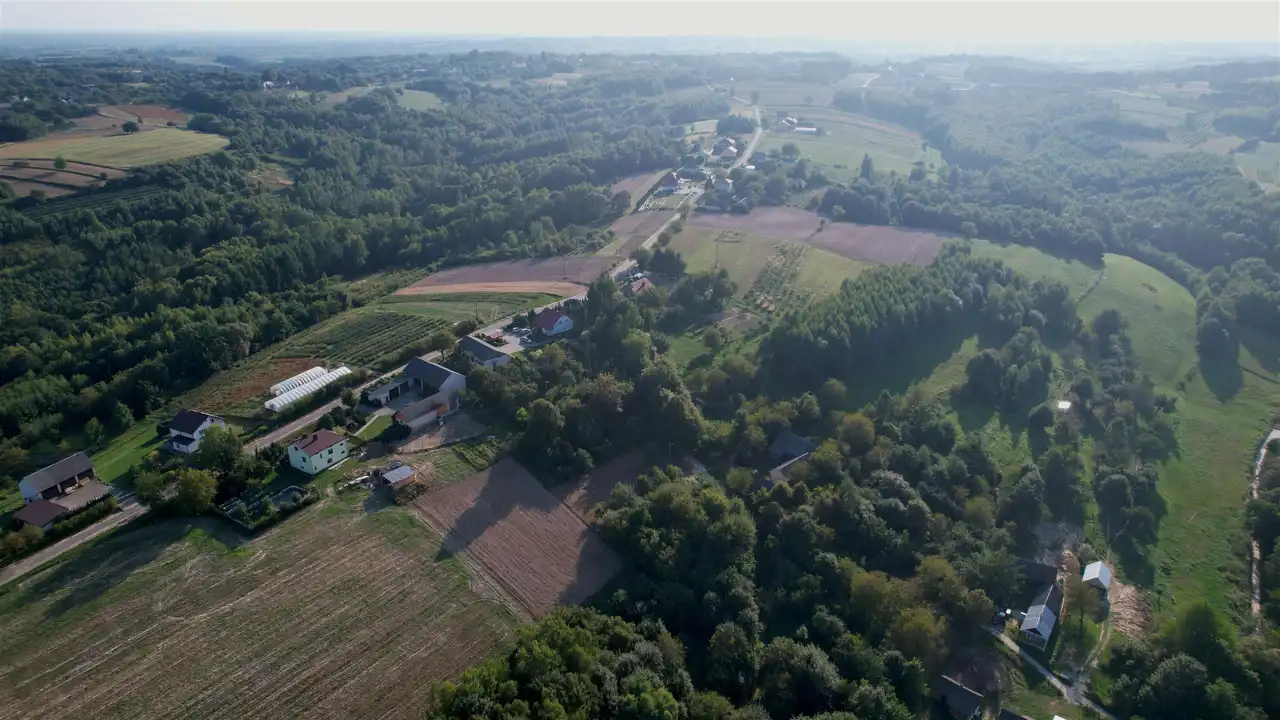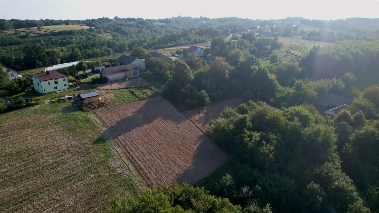 Nieruchomość o łącznej powierzchni 2561 m2 (nr ewid. 822, 824 - zobacz mapę) położona na delikatnym stoku, z przyjemnym widokiem na okolicę. Bezpośrednie sąsiedztwo stanowią tereny rolne oraz zabudowa siedliskowa. Działka jest kameralnie zlokalizowana ok. 100 od drogi asfaltowej z utwardzonym, gminnym dojazdem. Prąd i wodociąg na działce. Wyznaczone i bezsporne granice.