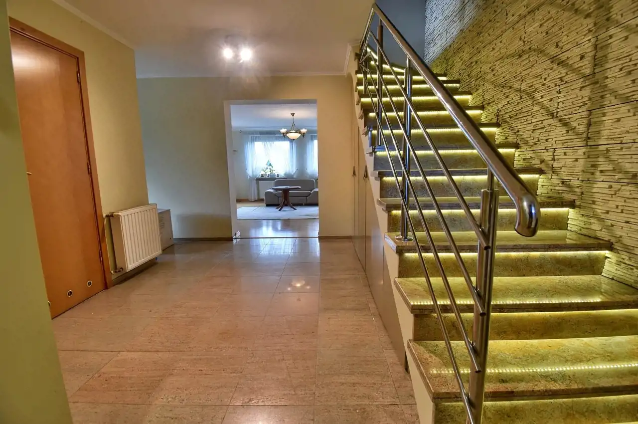 Construction of the house started in 2001 and was completed in 2007. The building was erected in traditional brick technology. Walls: structural internal walls – ceramic brick, partition walls – hollow brick, insulated with 12 cm styrofoam and finished with textured plaster (façade renovated in 2017).