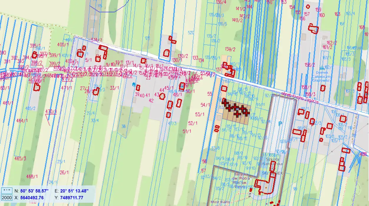 - Media Woda: w ulicy; Kanalizacja: w ulicy; Prąd: na sąsiedniej działce; Gaz: brak