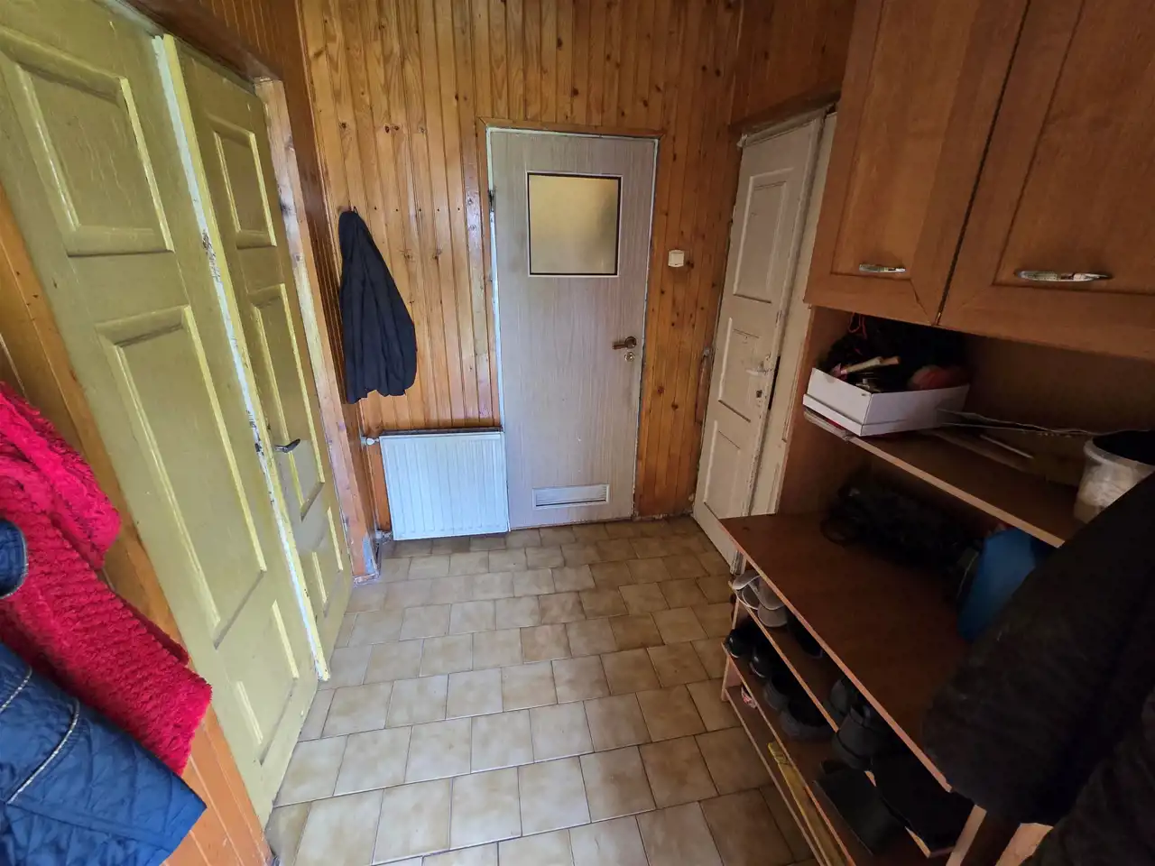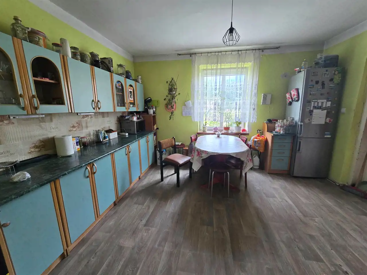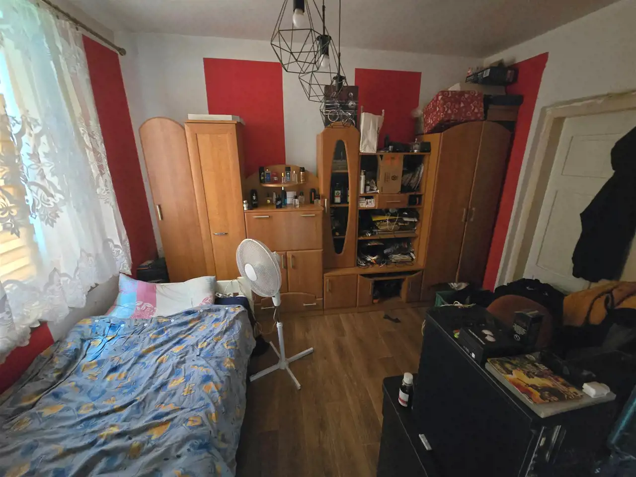 Na działce budynek z cegły czerwonej o powierzchni około 100m2, zbudowany w latach 60, składający się z 3 pokoi ( 19m2, 19m2, 10m2) kuchni ( 15m2), łazienki, przedpokoju.