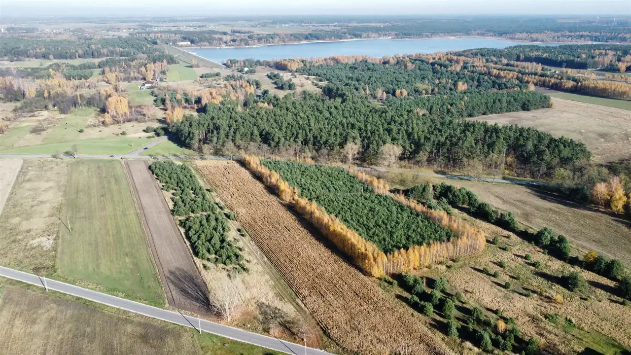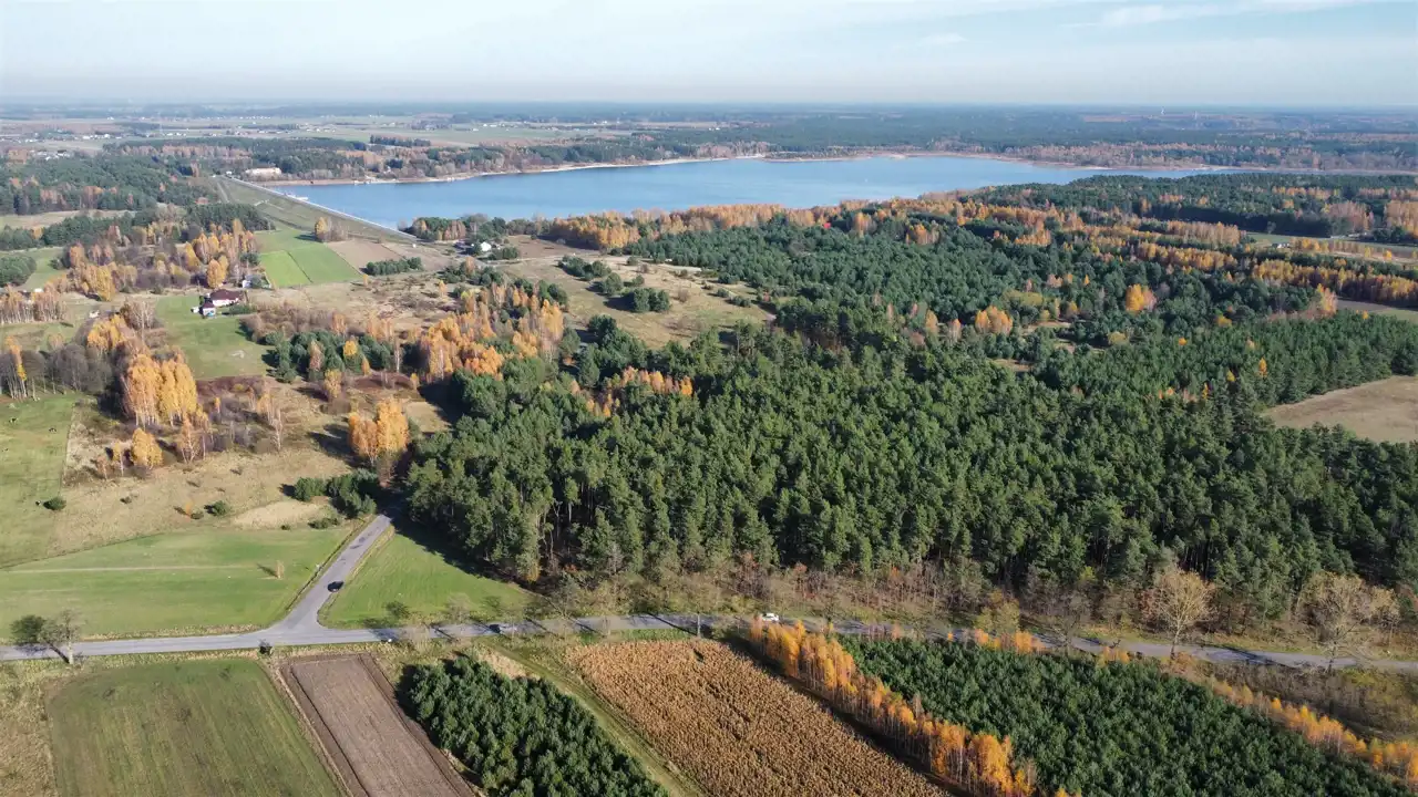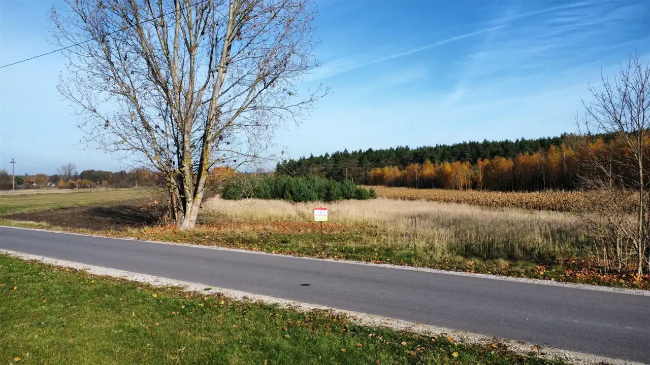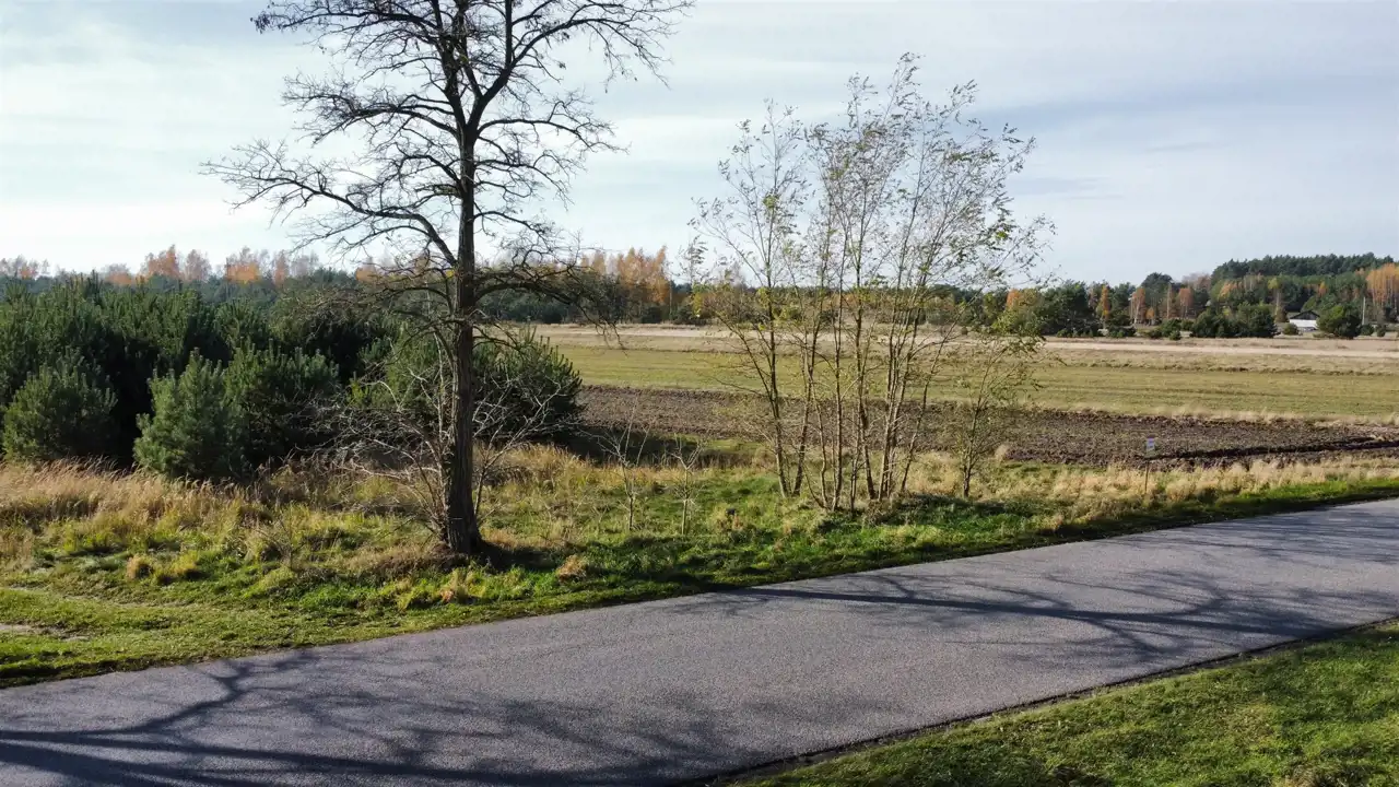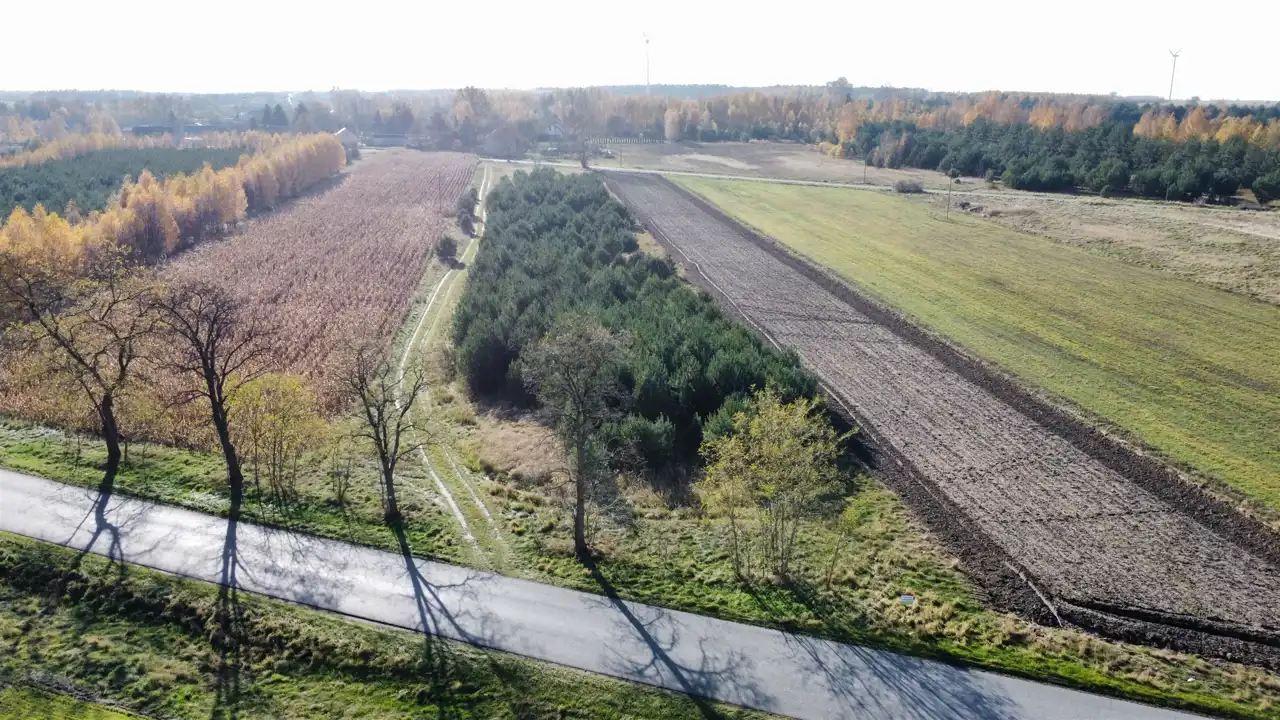 Działka pomiędzy dwiema drogami asfaltowymi.