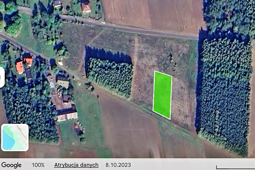 Działka położona jest w wyjątkowo spokojnej i zielonej okolicy. W sąsiedztwie znajdują się rozległe tereny leśne oraz łąki, co gwarantuje ciszę, prywatność i bliskość natury. To idealne miejsce dla osób, które chcą zamieszkać w kameralnym otoczeniu z dala od intensywnej zabudowy.
