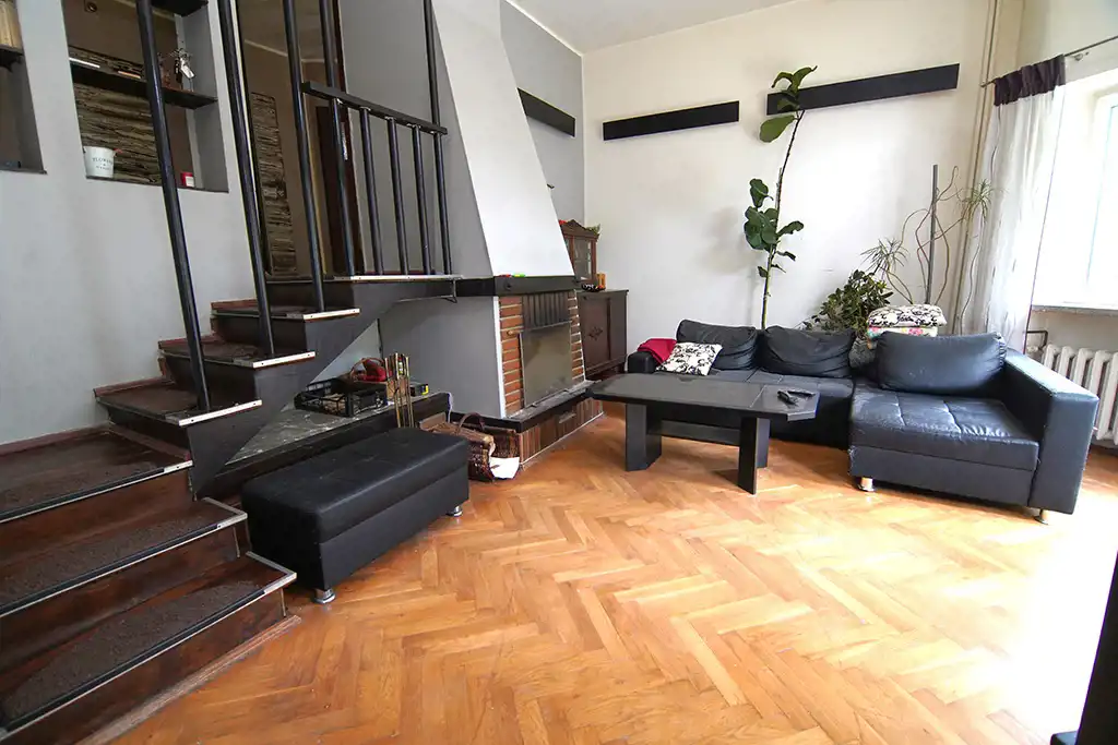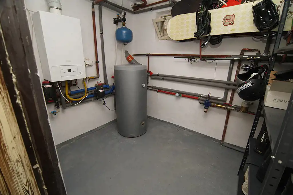 Głównym źródłem ogrzewania jest piec gazowy dwufunkcyjny. W salonie kominek, który pełni także funkcję ogrzewania.