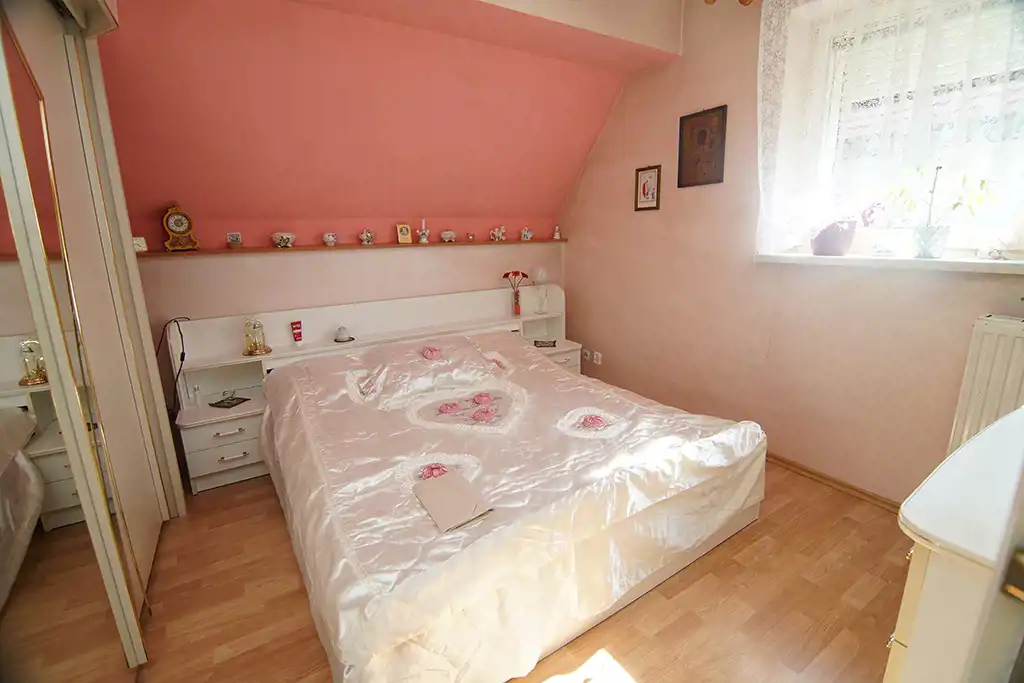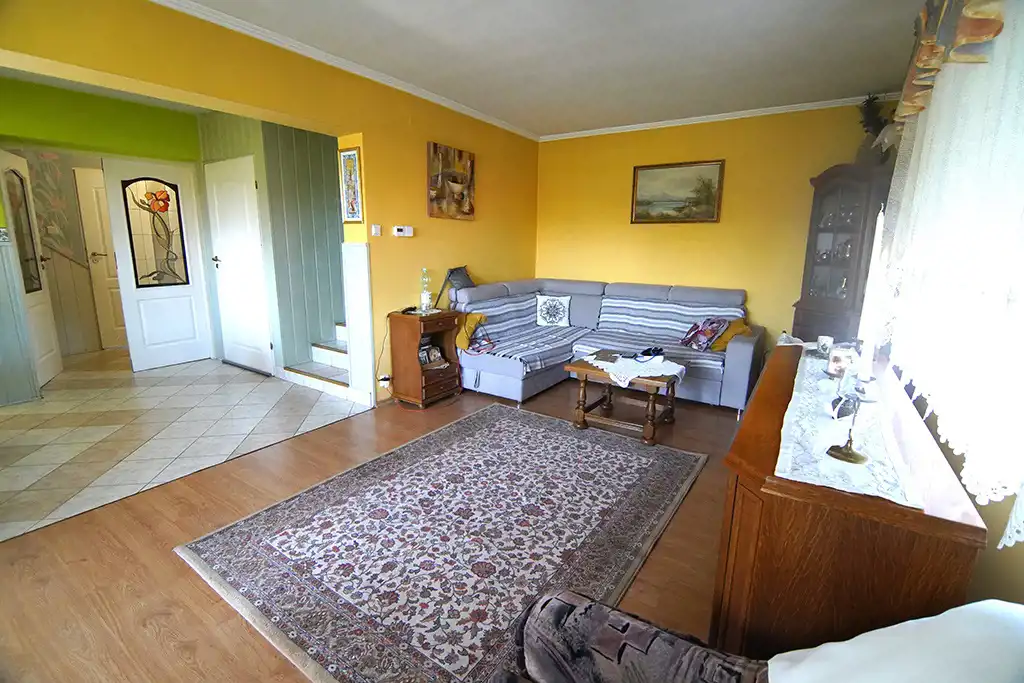 Dom został oddany do użytkowania w 1998 r. Dach dwuspadowy pokryty dachówką, stolarka okienna drewniana z roletami zewnętrznymi, drzwi wejściowe antywłamaniowe. W bryle budynku garaż o powierzchni ok. 20 m2.