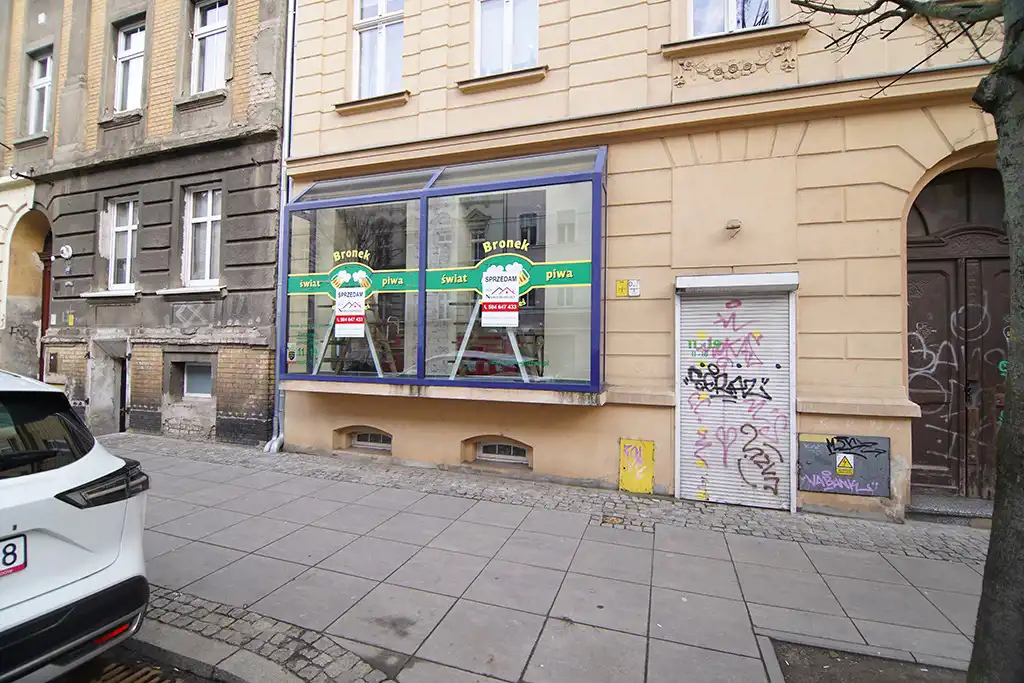 Lokal posiada duże przeszklone witryny oraz wejście z poziomu chodnika. Przynależy do lokalu piwnica.