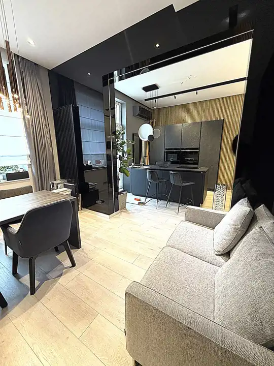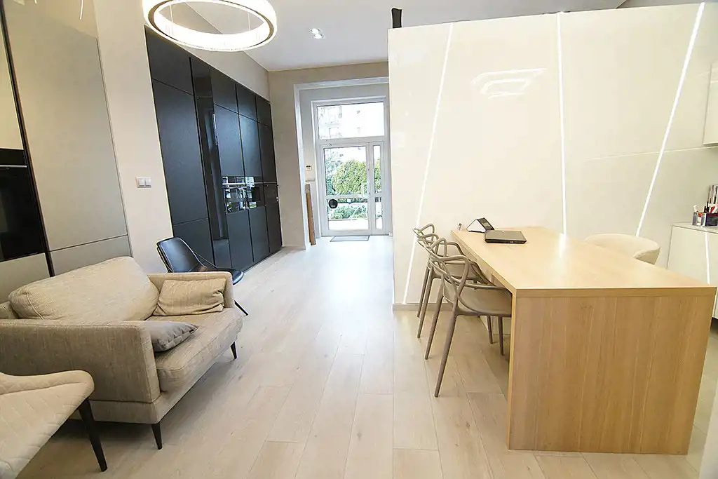 Lokal w bardzo dobrym stanie, wykończony wysokiej jakości materiałami.