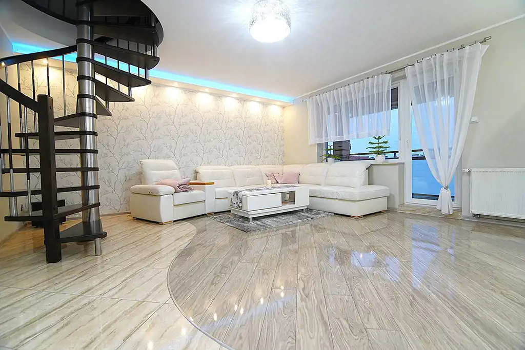 Mieszkanie dwupoziomowe o łącznej powierzchni 137 m2 usytuowane na 3 piętrze w 3 piętrowym bloku na os. Górczyn.