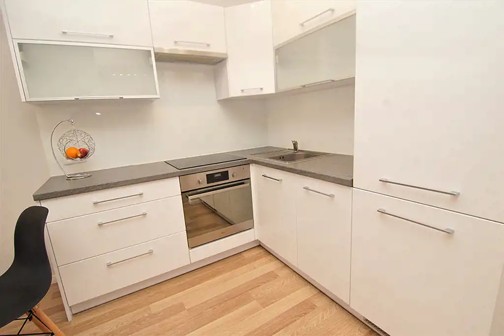 Mieszkanie znajduje się na pierwszym piętrze w niskim, trzypiętrowym bloku. Mieszkanie ma bardzo funkcjonalny układ i wysoki standard wykończenia.