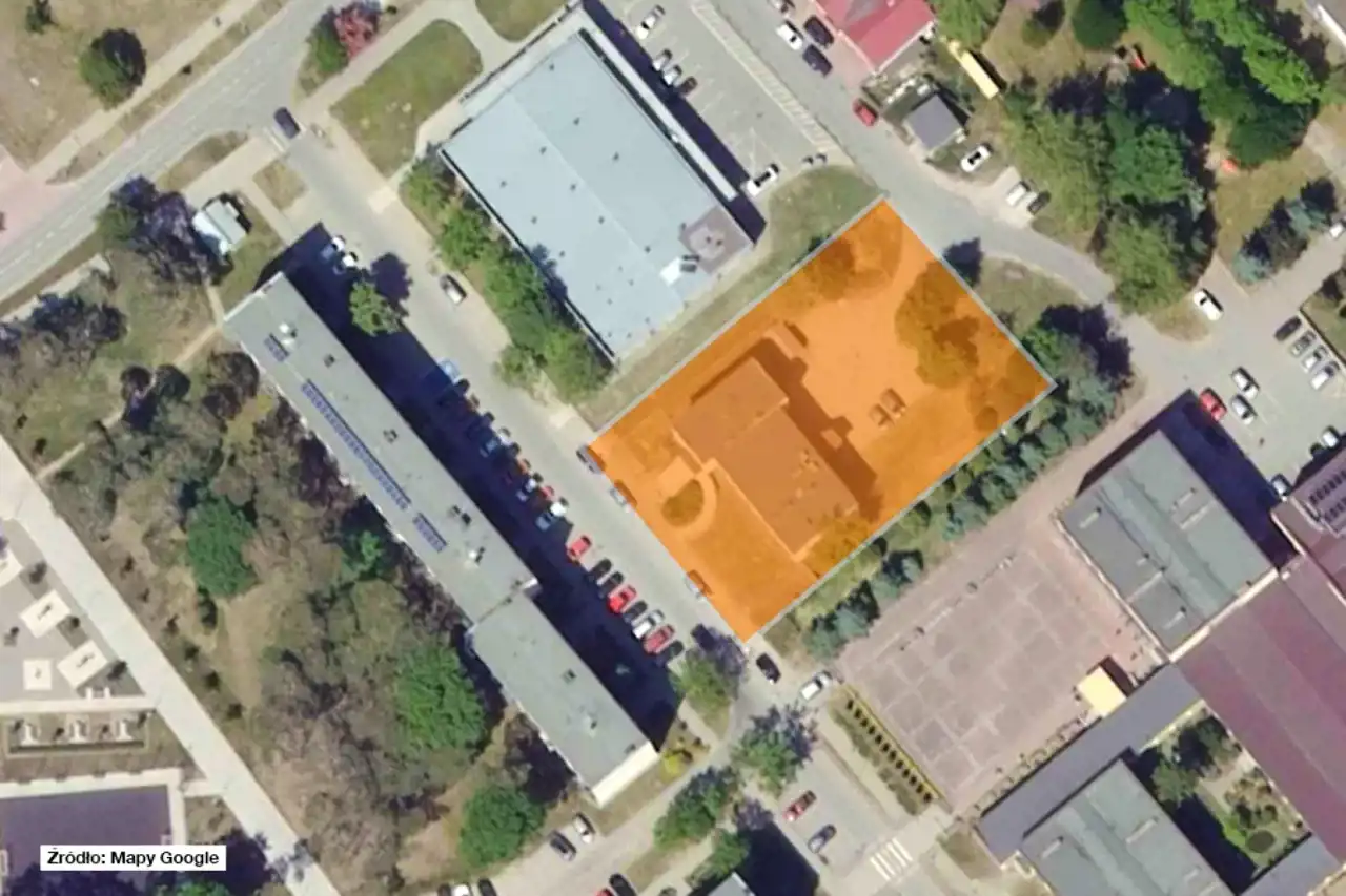 Kształt działki regularny prostokątny. Otoczenie nieruchomości stanowi niska zabudowa wielorodzinna, szkoła podstawowa, budynek handlowo-usługowy. Na działce dostępne liczne miejsca parkingowe. Obiekt wyposażony jest w instalację: elektryczną, wodociągową, kanalizacyjną, centralnego ogrzewania, telefoniczną, komputerową, ppoż, alarmową i odgromową.