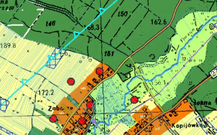 Według studium obszar przeznaczony jest pod zabudowę zagrodową MR i RP – uprawy polowe.
