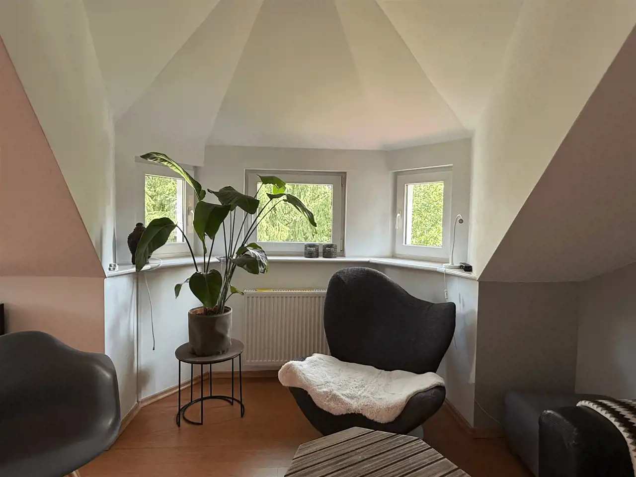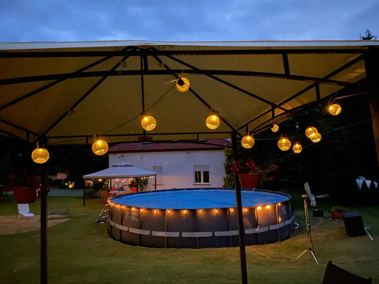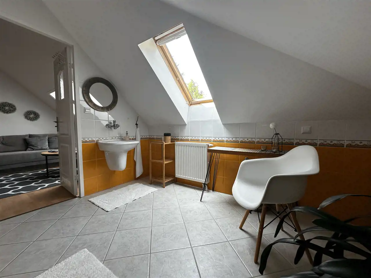 dodatkowy pokój gościnny i zadaszony balkon z widokiem na posesję.