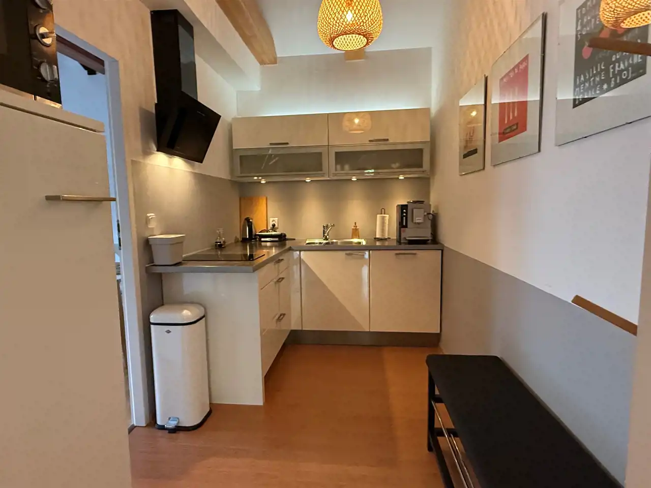Na pierwszym piętrze 2 apartamenty (jedno i dwupokojowy z własnymi aneksami kuchennymi, z kompletnym wyposażeniem)
