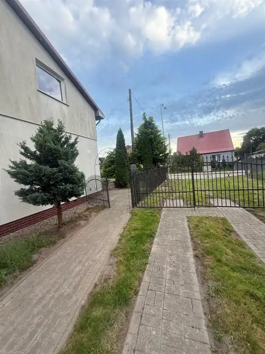 Do domu prowadzą dwa ogrodzone wjazdy, na których można dodatkowo zaparkować samochód.