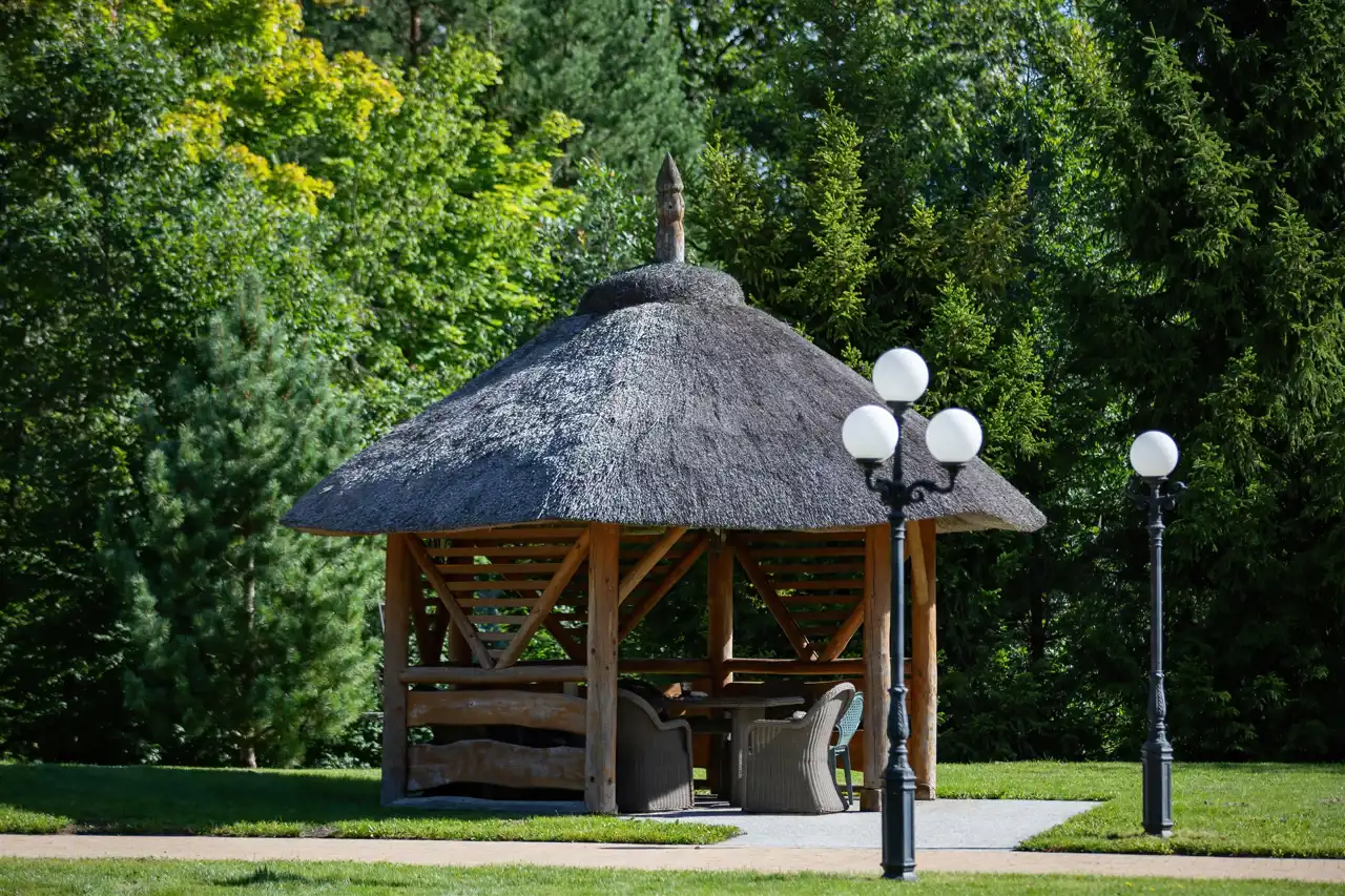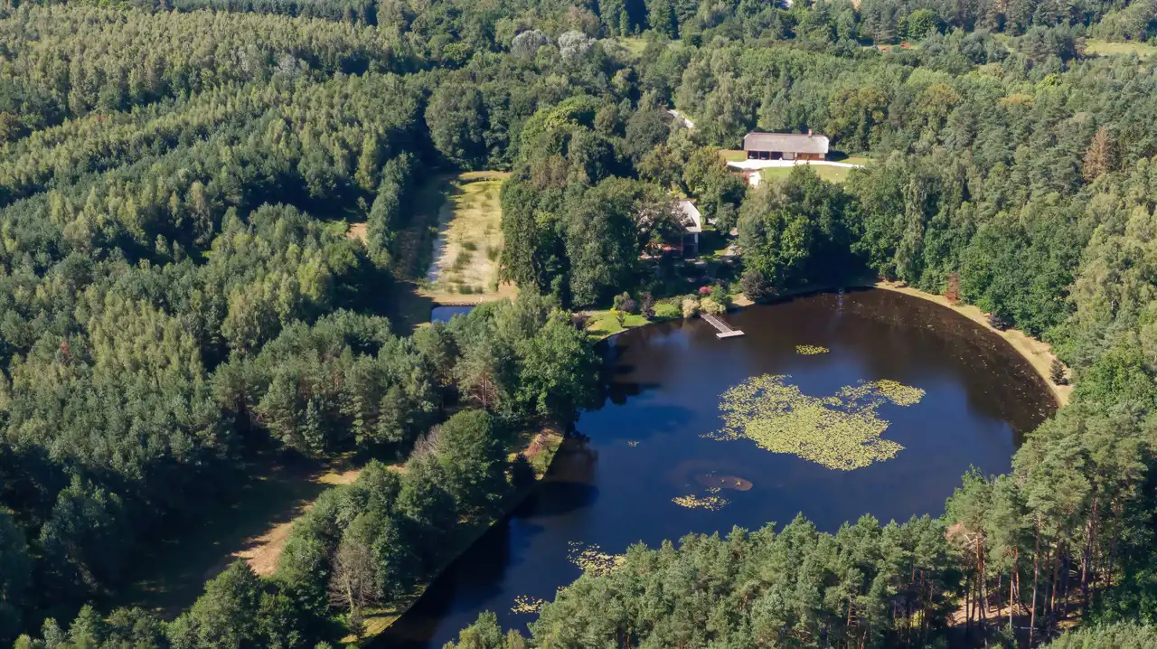 Na terenie znajdują się cztery malownicze stawy przelewowe, w których dostojnie pływają jesiotry i karpie. Tuż obok rozciąga się prywatny las, pełen spokoju i cienia, idealny na spacery o każdej porze roku.