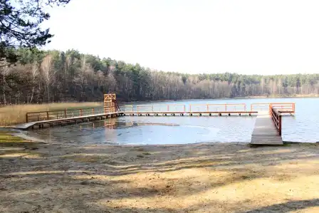 a także trzech jezior ( Małe; Środkowe i Szpitalne ) zagospodarowanych dla turystów (wędkarstwo, plaża z molo i mini siłownią oraz placem zabaw). Na działce posadowiono domek drewniany 50x10 m. Na parterze znajduje się: salon z kominkiem i aneksem kuchennym o pow. ok. 25 m2 , sypialnia ok. 9 m2 oraz łazienka z prysznicem ok. 5 m2. Na poddaszu znajdują się dwa pokoje 20 i 15 m2 po podłodze. Domek przygotowany na podłączenie wody i szamba, które trzeba wykonać. Na granicy działki stoi skrzynka prądowa. Działka porośnięta sosnami - samosiejkami do własnej adaptacji. Idealne miejsce dla osób ceniących ciszę i spokój, czyste powietrze a także aktywnie pragnących spędzać czas - turystyka kajakowa, żeglarska, piesza, rowerowa czy wędkarska. W sąsiedztwie znajduje się Zalew Koronowski a działki sąsiadują z terenem Tucholskiego Parku Krajobrazowego.