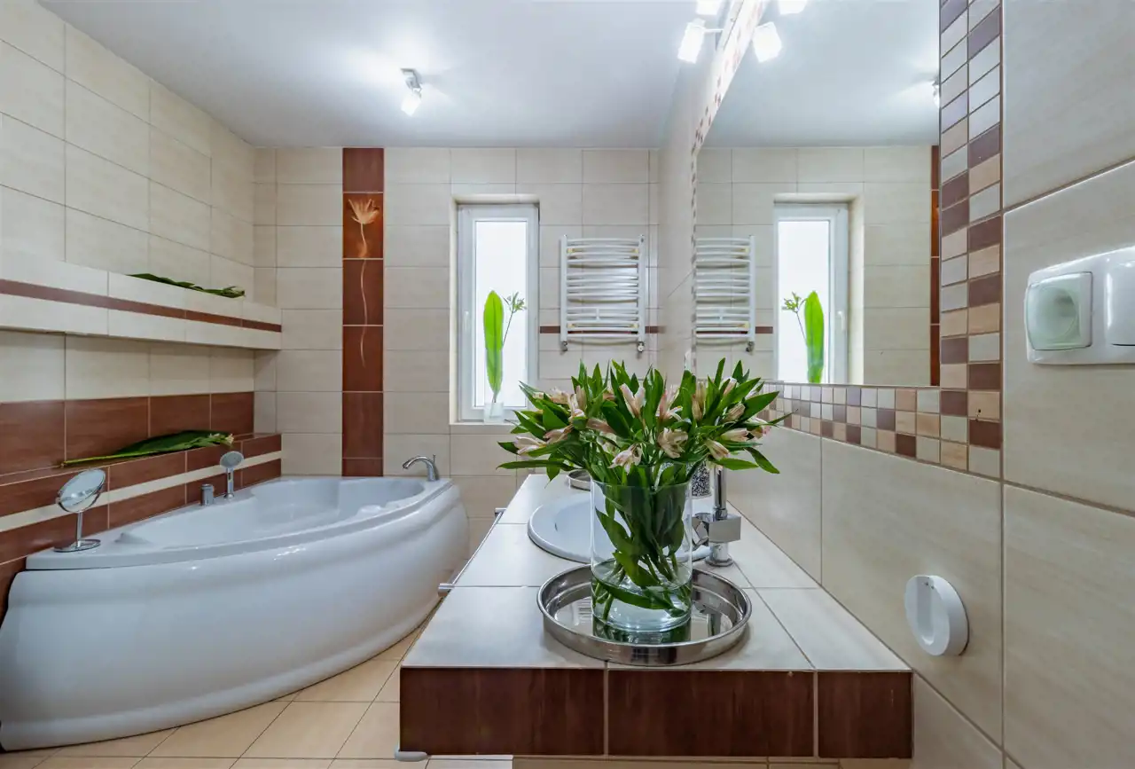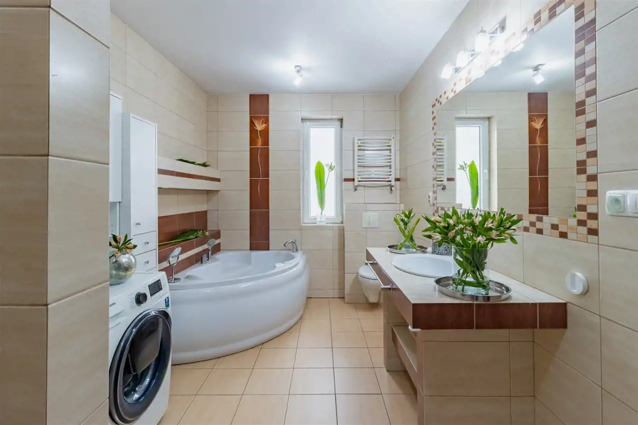 - Komfortowym rozwiązaniem zastosowanym w domu jest łazienka z dużą narożną wanną idealną do relaksujących kąpieli po długim dniu czy urządzenia sobie domowego spa. W domu jest również osobne WC, co zapewni Ci dodatkową funkcjonalność i wygodę dnia codziennego.