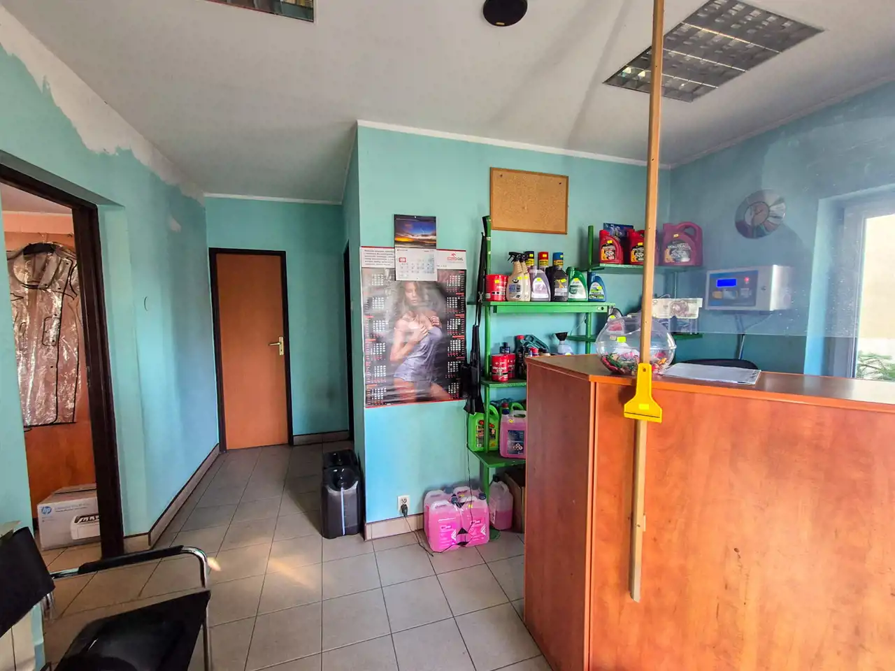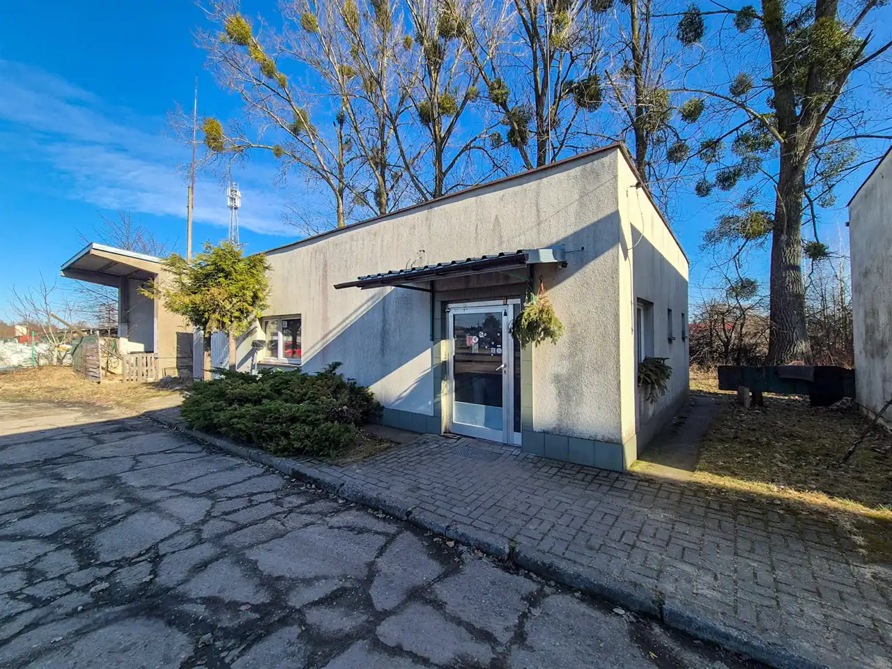 - budynek ok 60 mkw z miejscem biurowym i salą sprzedaży, łazienką oraz pomieszczeniem służbowym