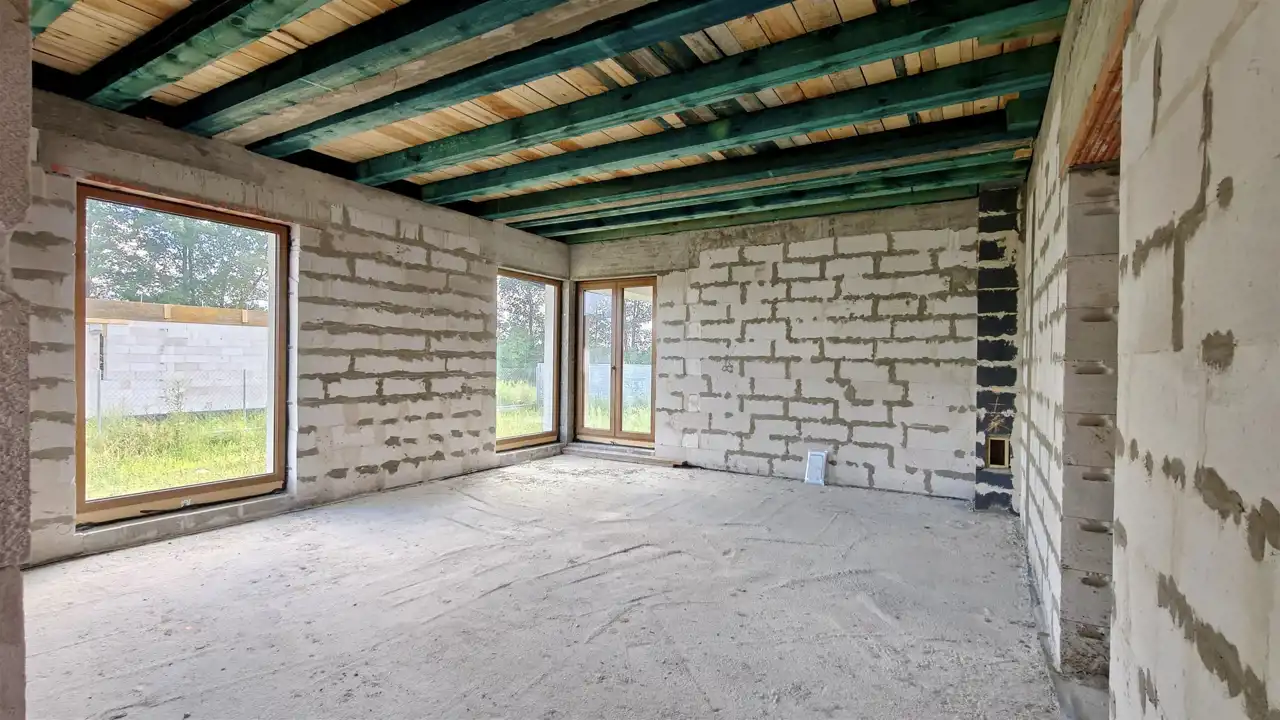 Za dopłatą 40 000 zł istnieje możliwość wykonania tynków wewnętrznych oraz pełnej instalacji elektrycznej, alarmowej i teleinformatycznej, co znacząco przyspieszy proces wykończenia domu.