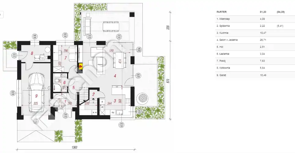 Na 121,27 mkw powierzchni użytkowej znajdują się 4 sypialnie, salon, dwie łazienki, kuchnia, garderoba, kotłownia.
