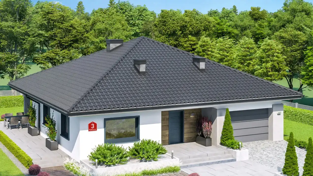 Dom według projektu "Dom przy Rubinowej 3" o powierzchni całkowitej 142,71 m2, składa się z: