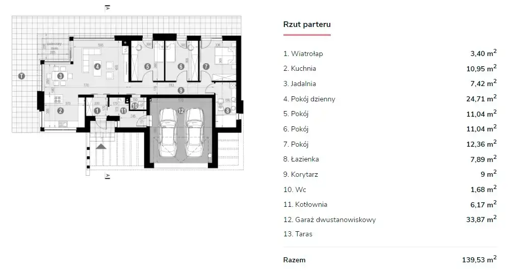 Do budynku przynależy garaż dwu-stanowiskowy.