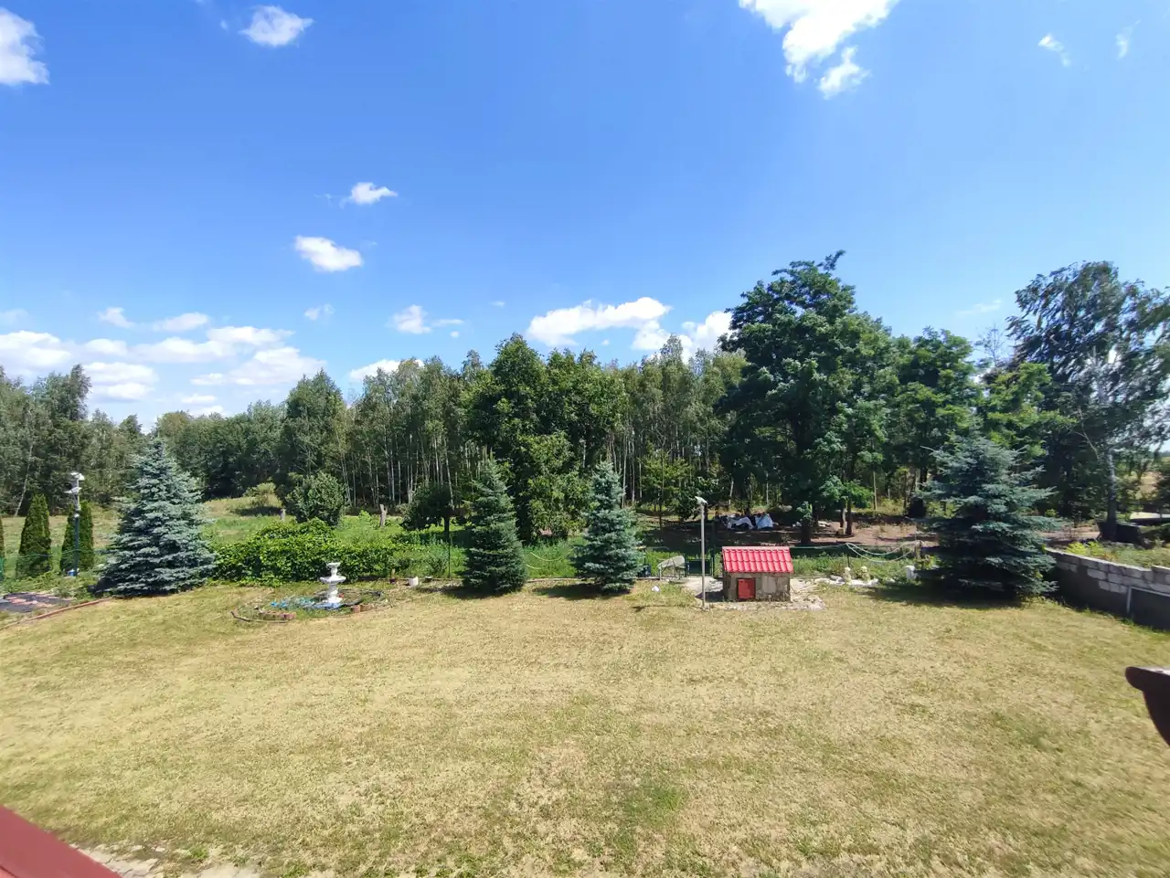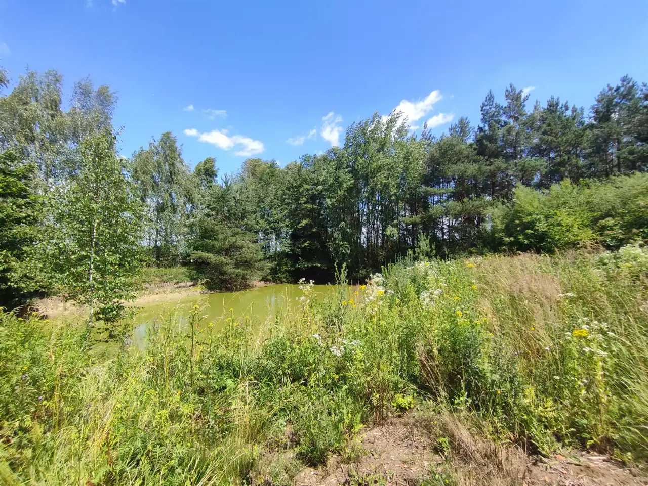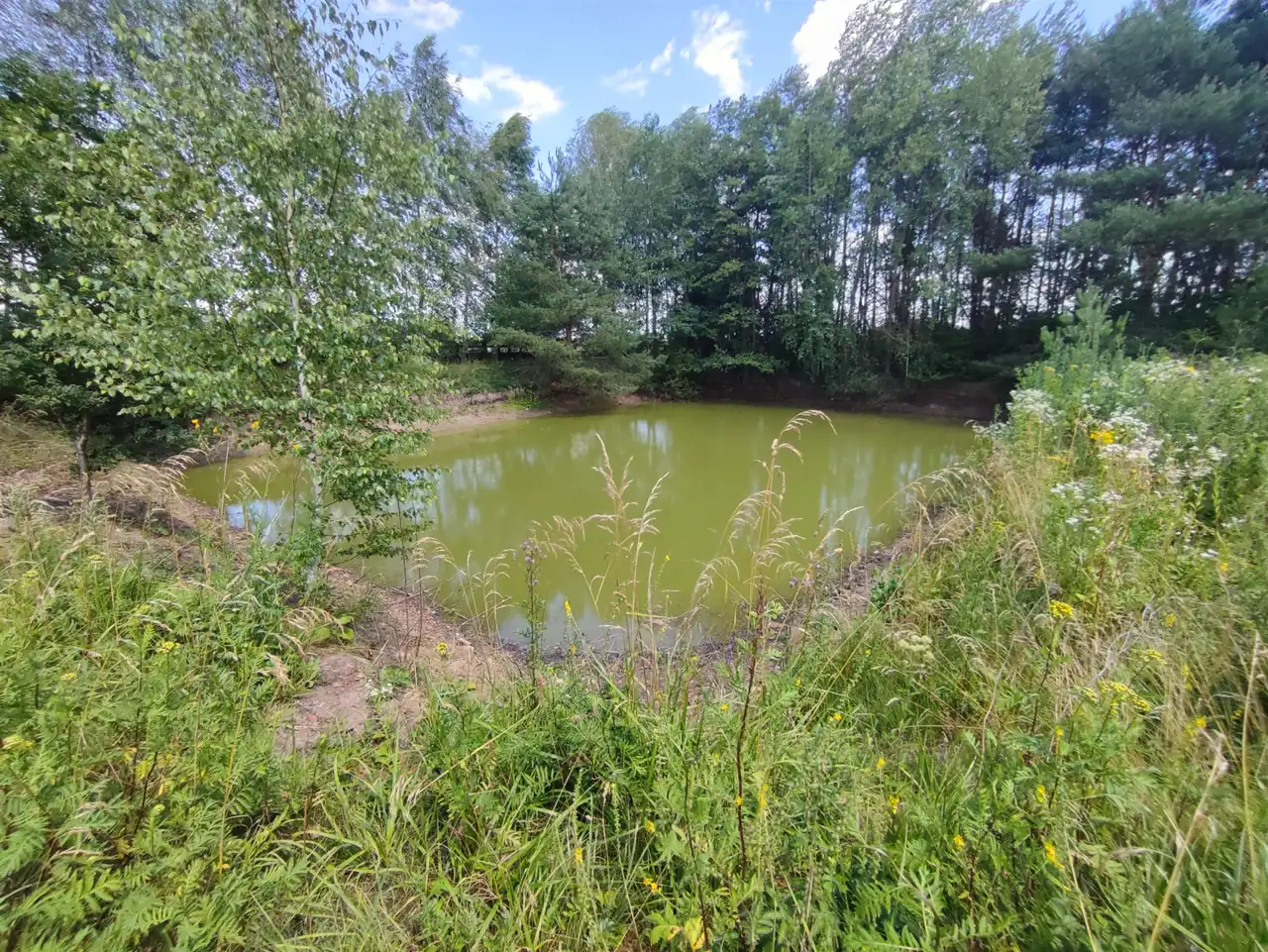 Działka zagospodarowana. Kolejnym plusem dla ewentualnego miłośnika wędkowania - staw.