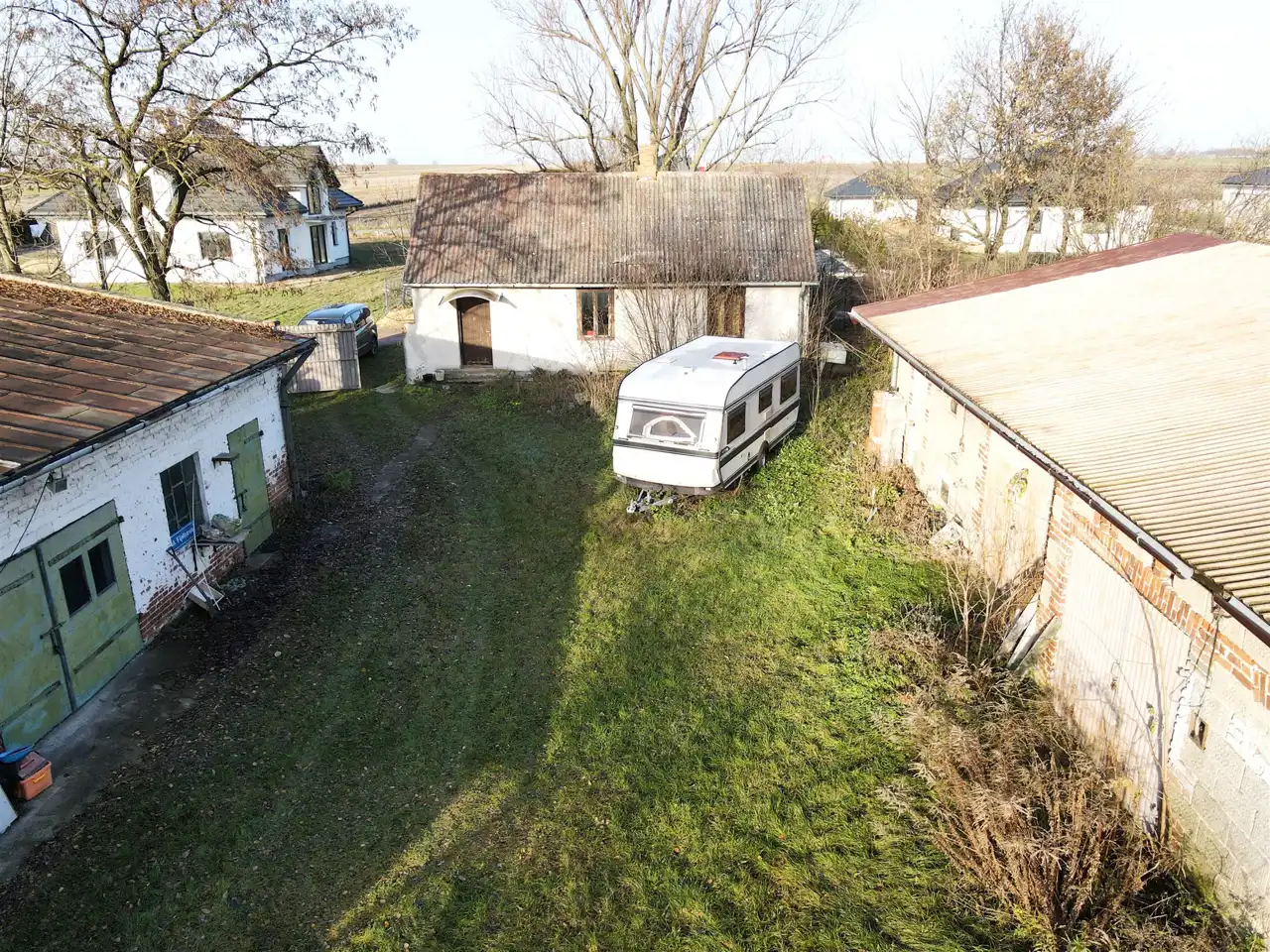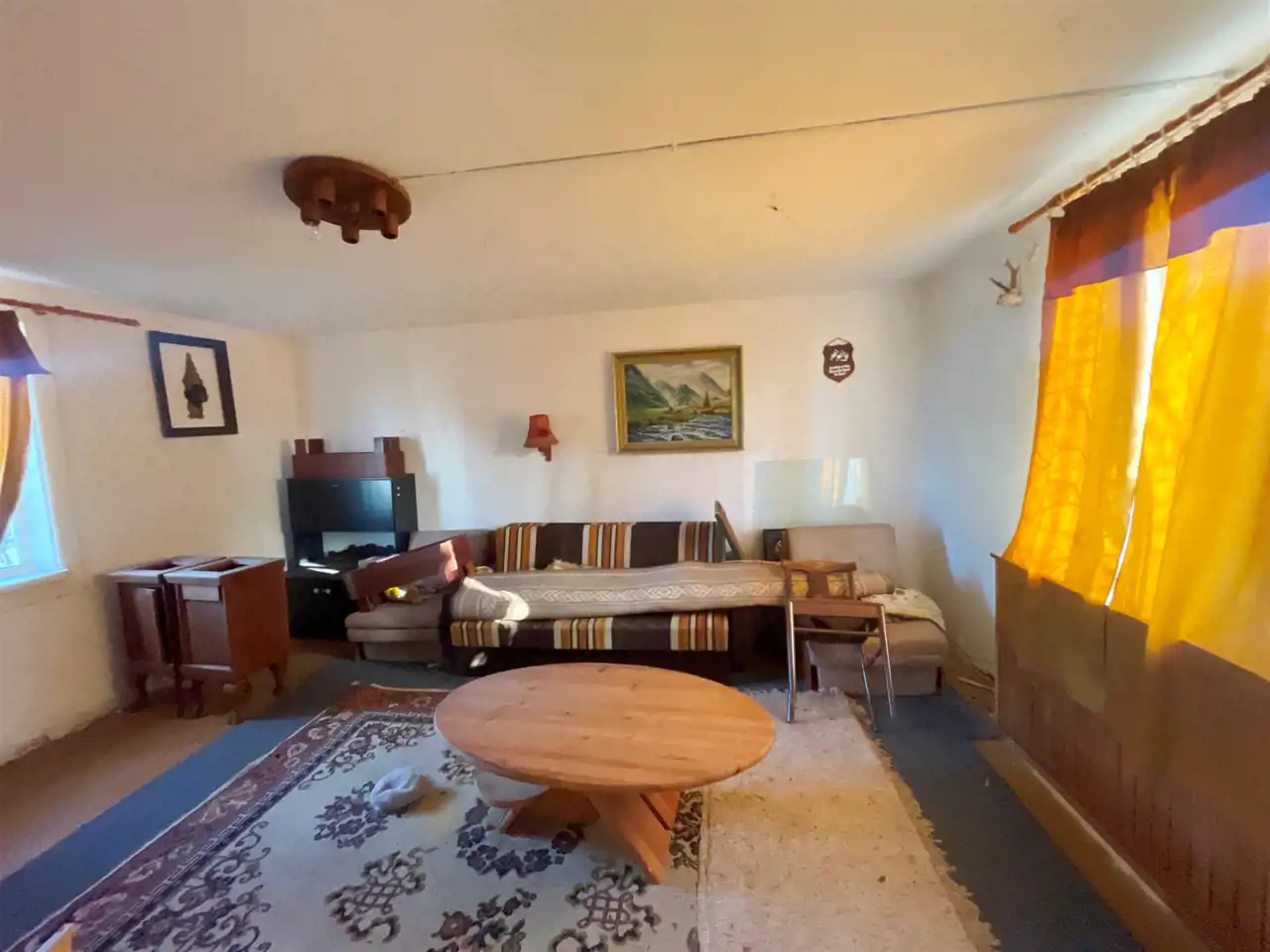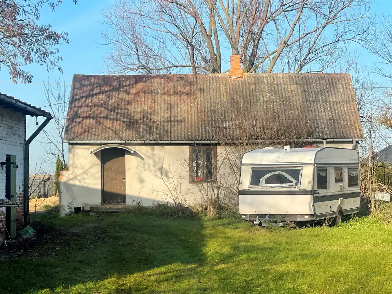 - niedużym drewnianym domkiem do remontu o powierzchni ok. 50 metrów kwadratowych