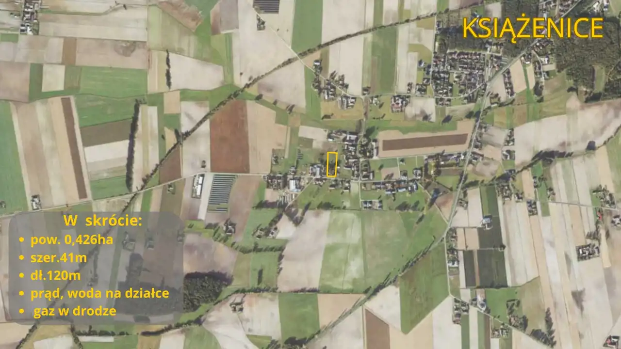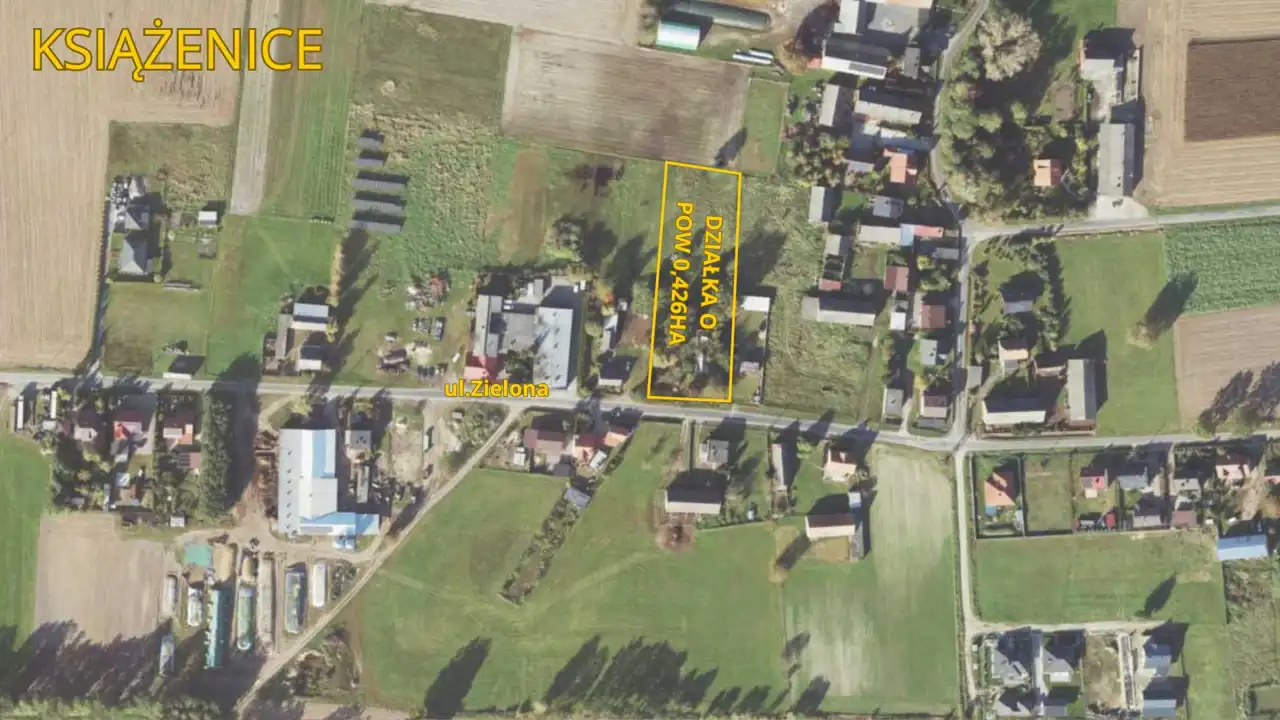 Oferujemy do zakupu nieruchomość gruntową o powierzchni 4260 m², zlokalizowaną w spokojnej i urokliwej części Książenic, przy ulicy Zielonej.