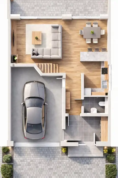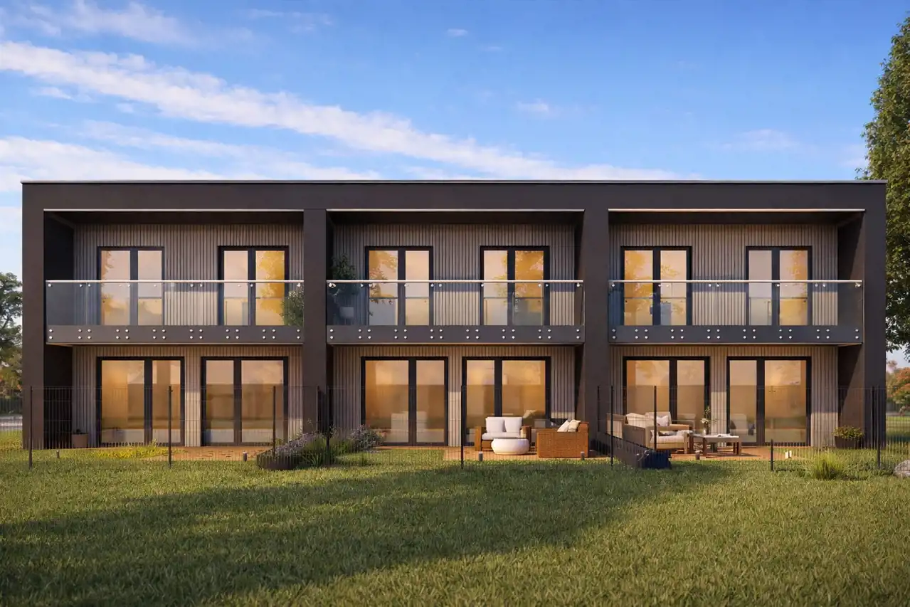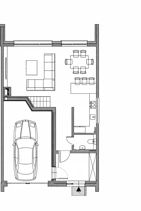 Wykończenie realizowane jest bez mebli ruchomych, co daje przyszłym właścicielom możliwość urządzenia domu zgodnie z własnym stylem i potrzebami rodziny.