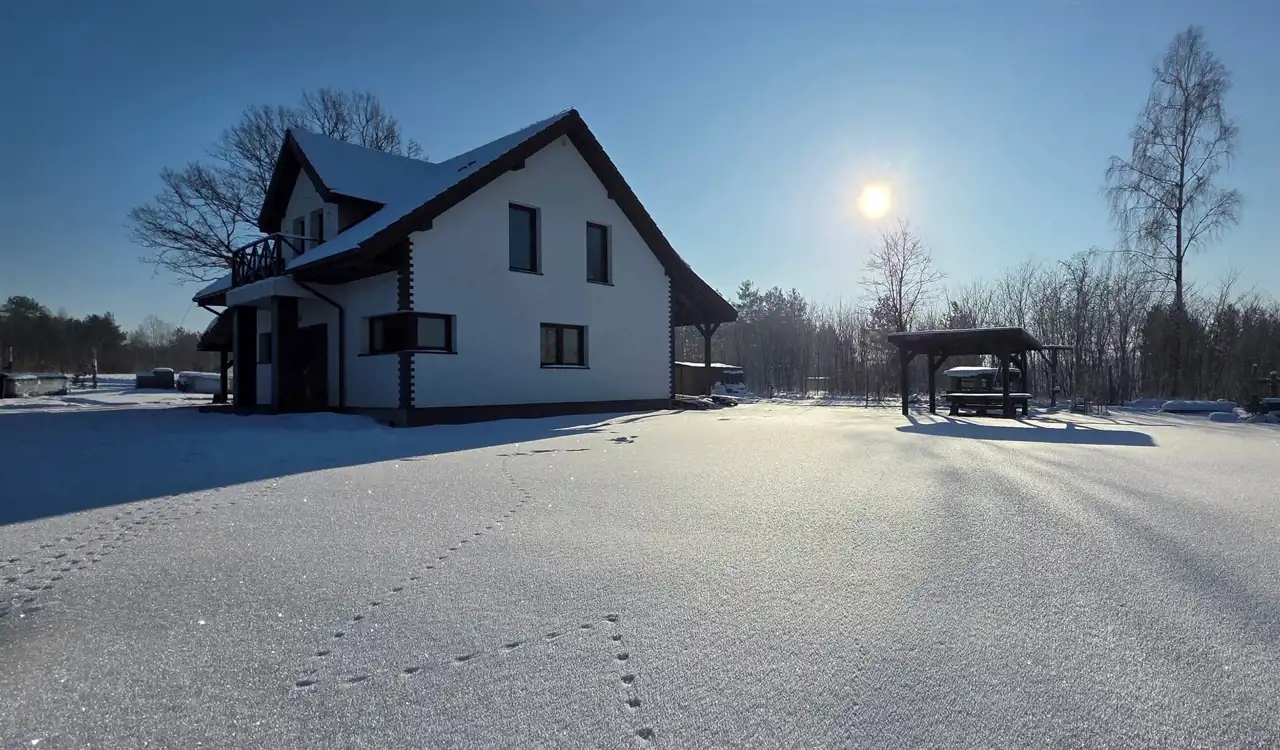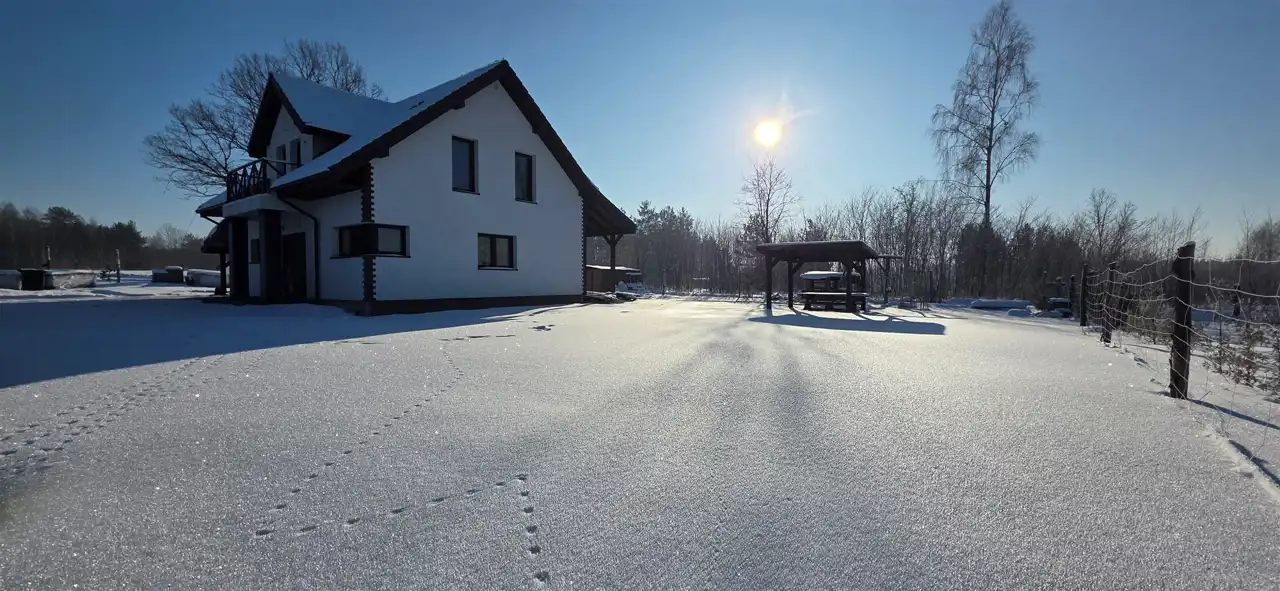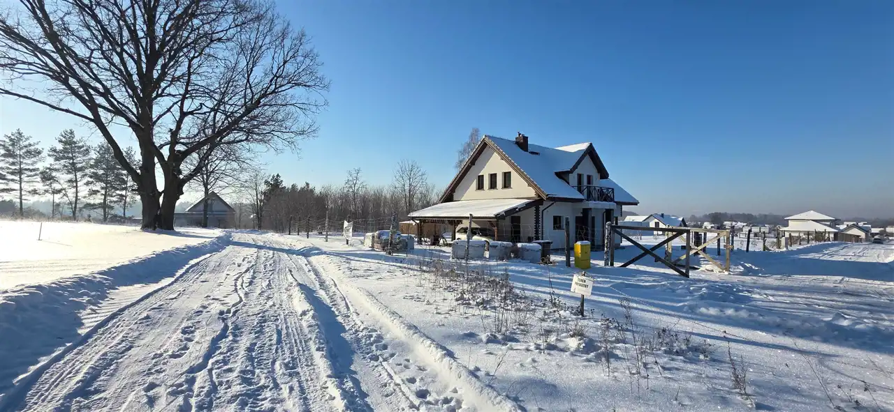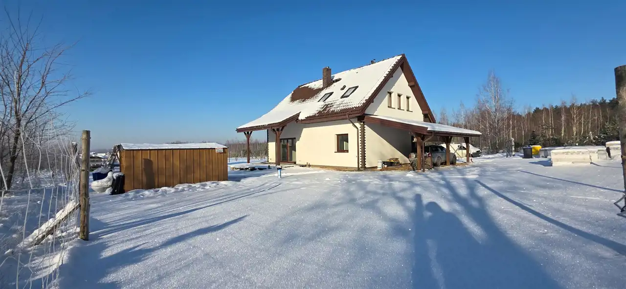 Nieruchomość wykonana z bloczków z betonu komórkowego Ytong, docieplona styropianem 20 cm i wełną 35 cm która jest doskonałą izolacją dachu. Dach pokryty jest dachówką betonową (marki Braas)która należy do najbardziej wytrzymałych pokryć dachowych. Jest odporna na czynniki atmosferyczne, mrozoodporna oraz posiada niską nasiąkliwość. Drzwi wejściowe solidne z przeszkleniem.